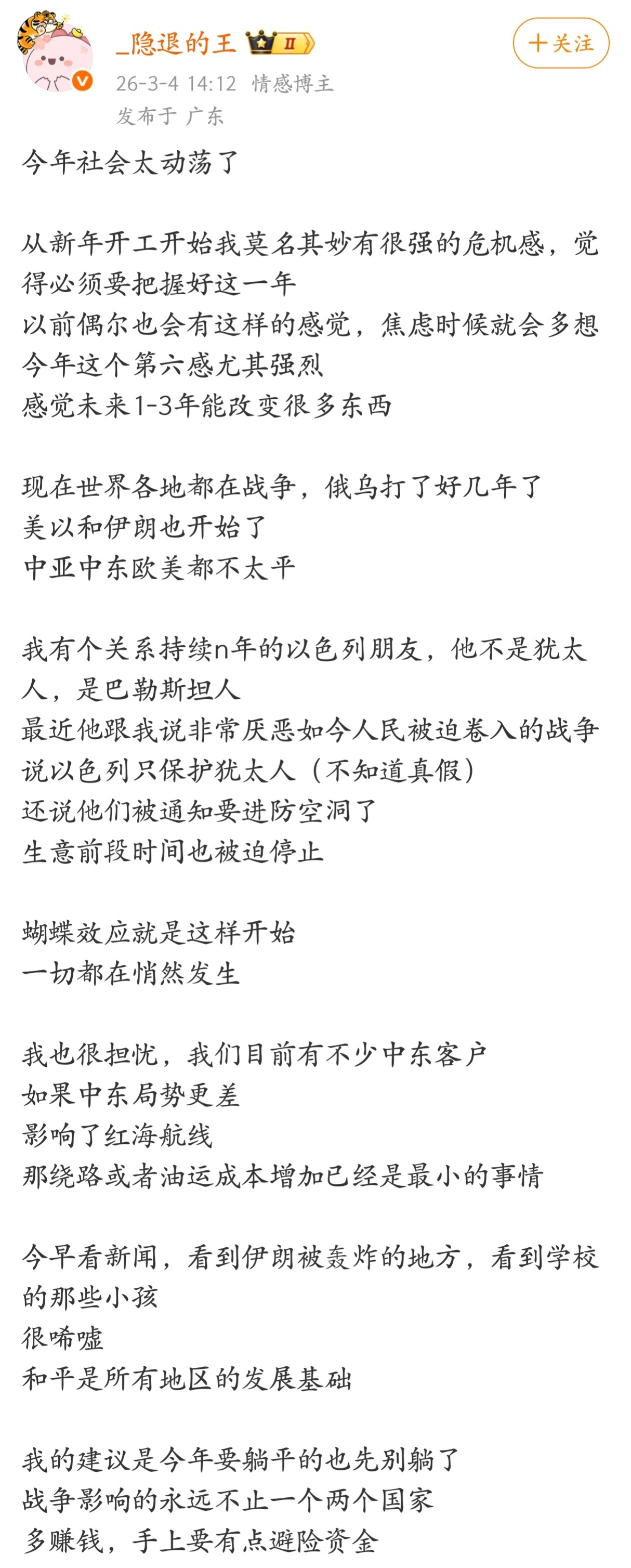 建议今年要躺平的先别躺了,战争影响的永远不止一个两个国家,多赚钱,手上要有点避险资金。
