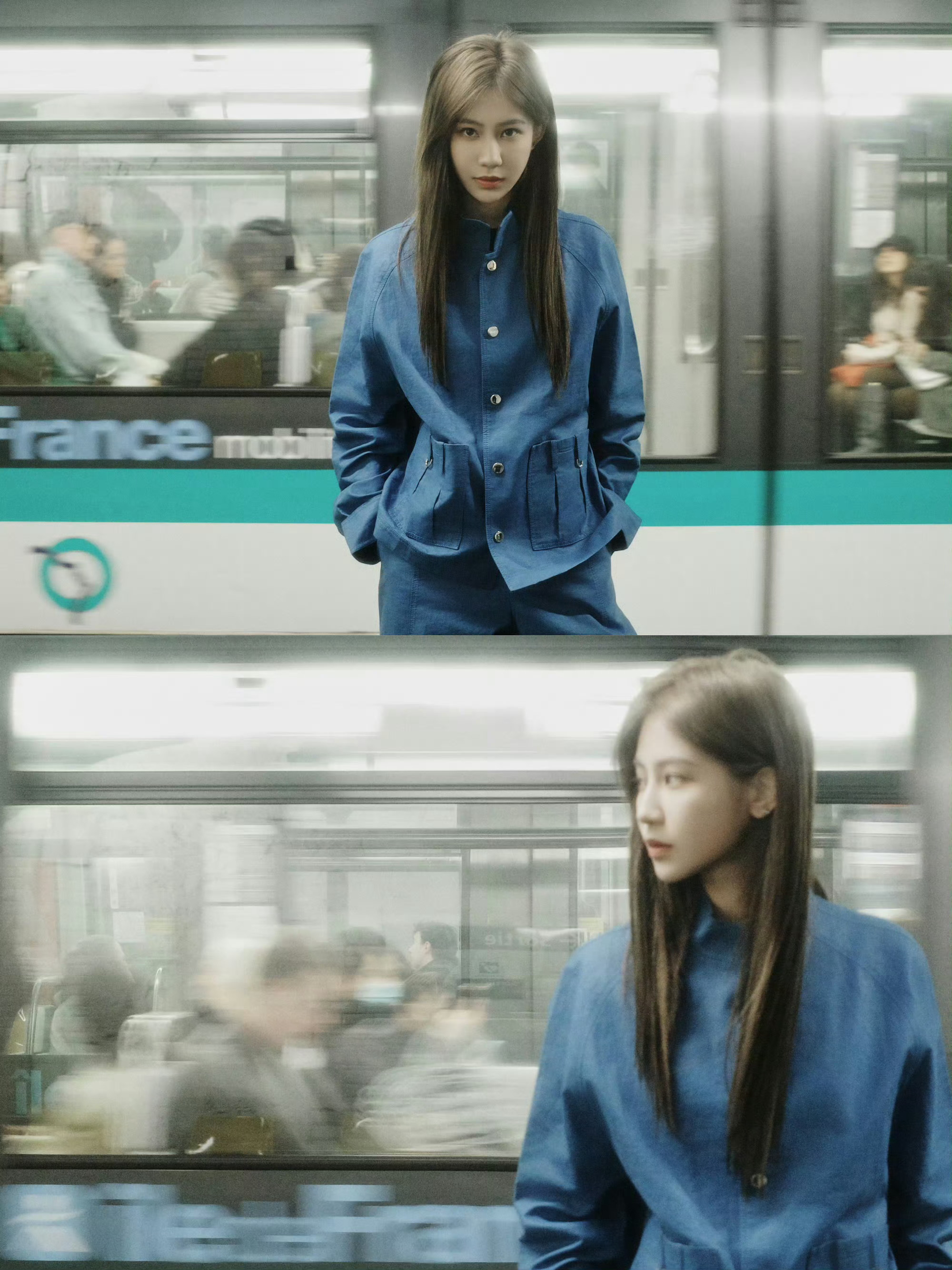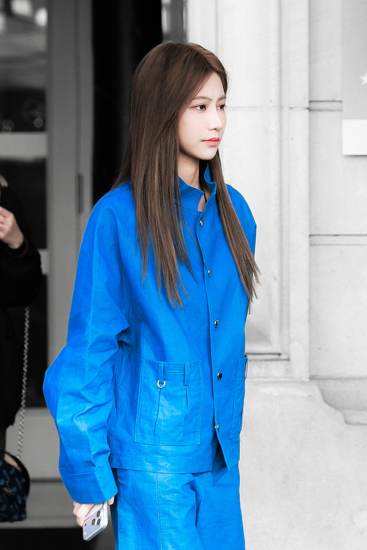 袁一琦新中式蓝色时装 袁一琦巴黎时装周第二场亮相夏姿陈看秀一身新中式蓝色时装!松弛高级、复古摩登袁一琦宝蓝色工装