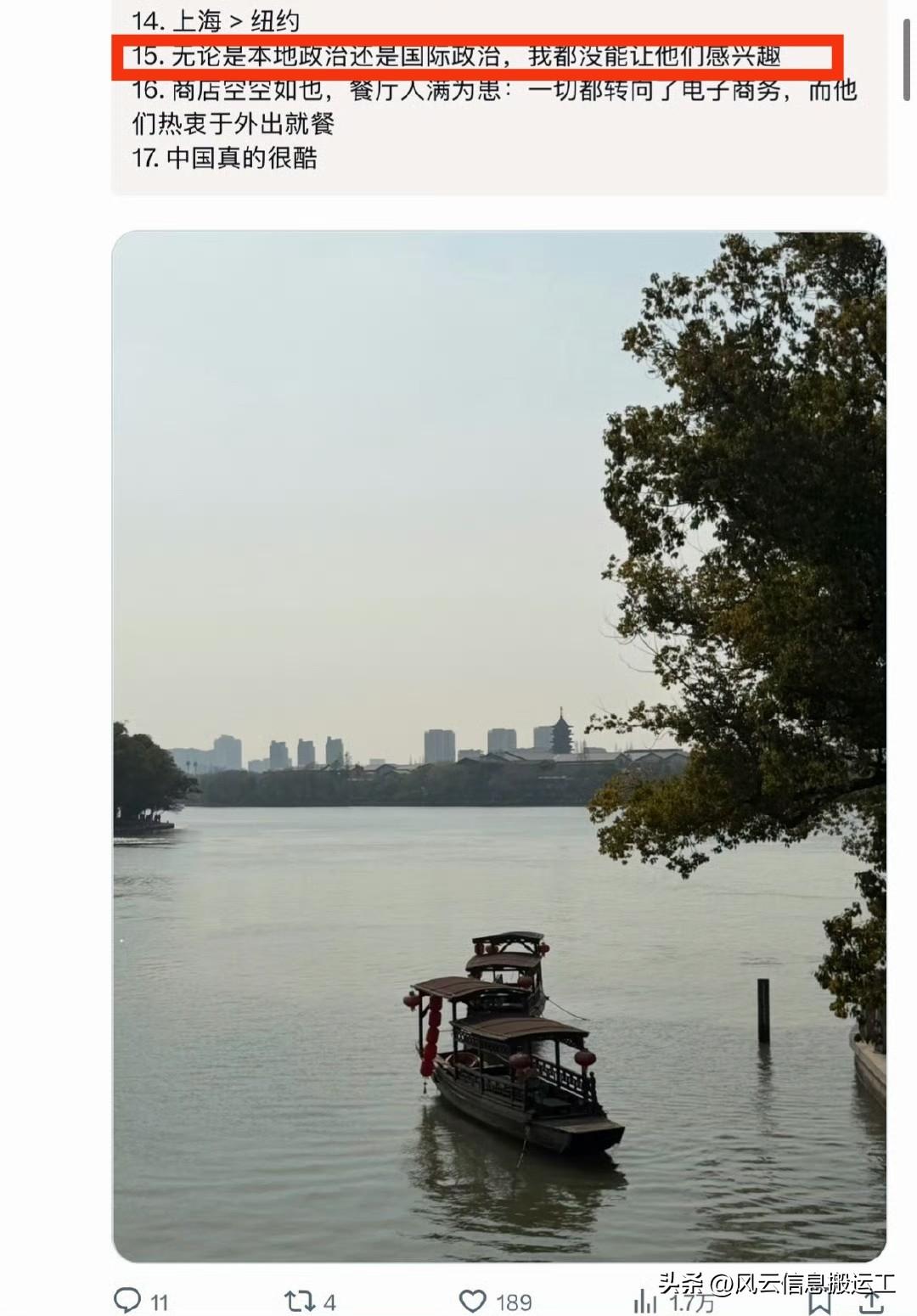 一个西班牙人在上海杭州旅行一周的感想 其中第十五条应该有点问题,一般男性特别是上了年纪的男性,对国内外政治都比较感兴趣的!