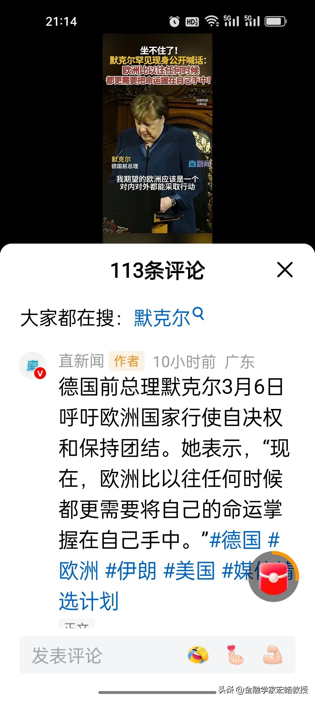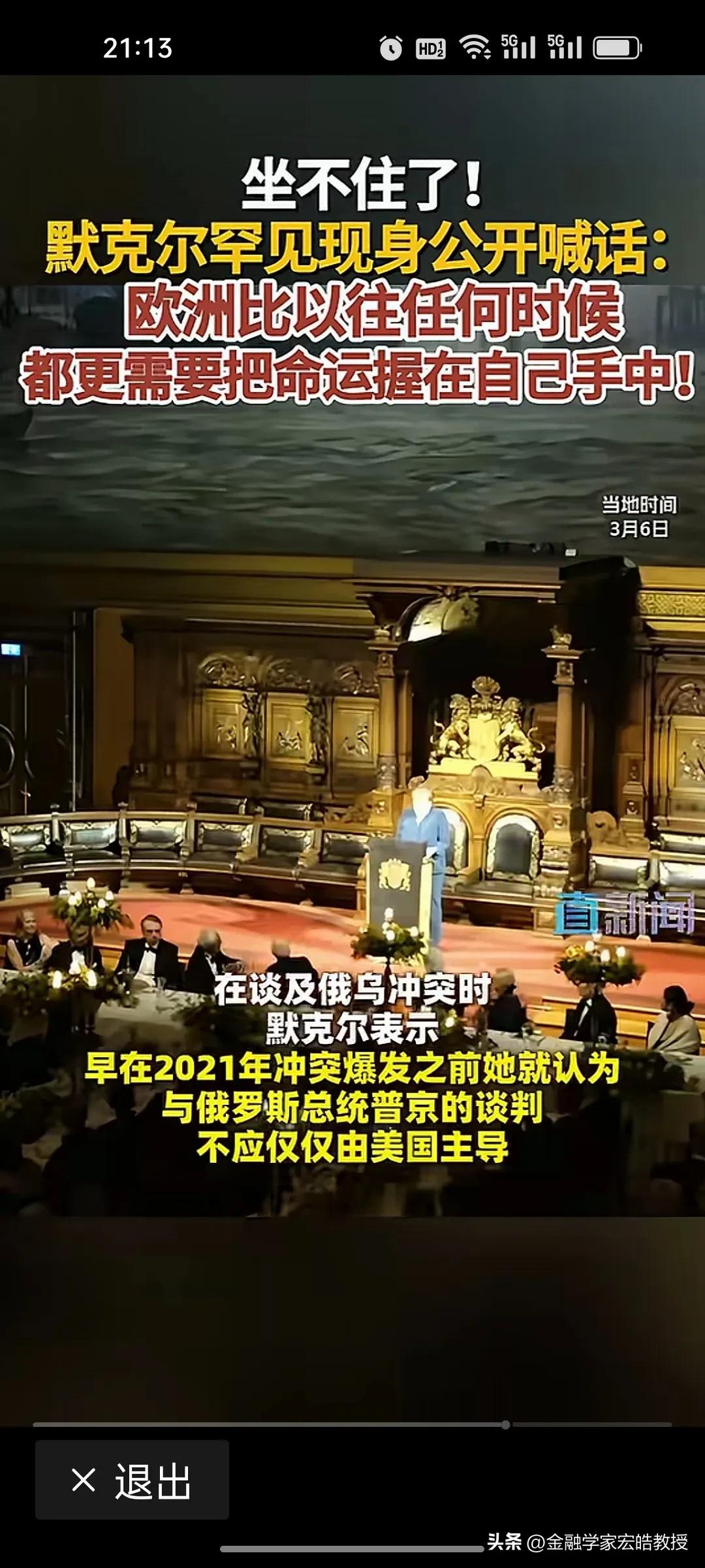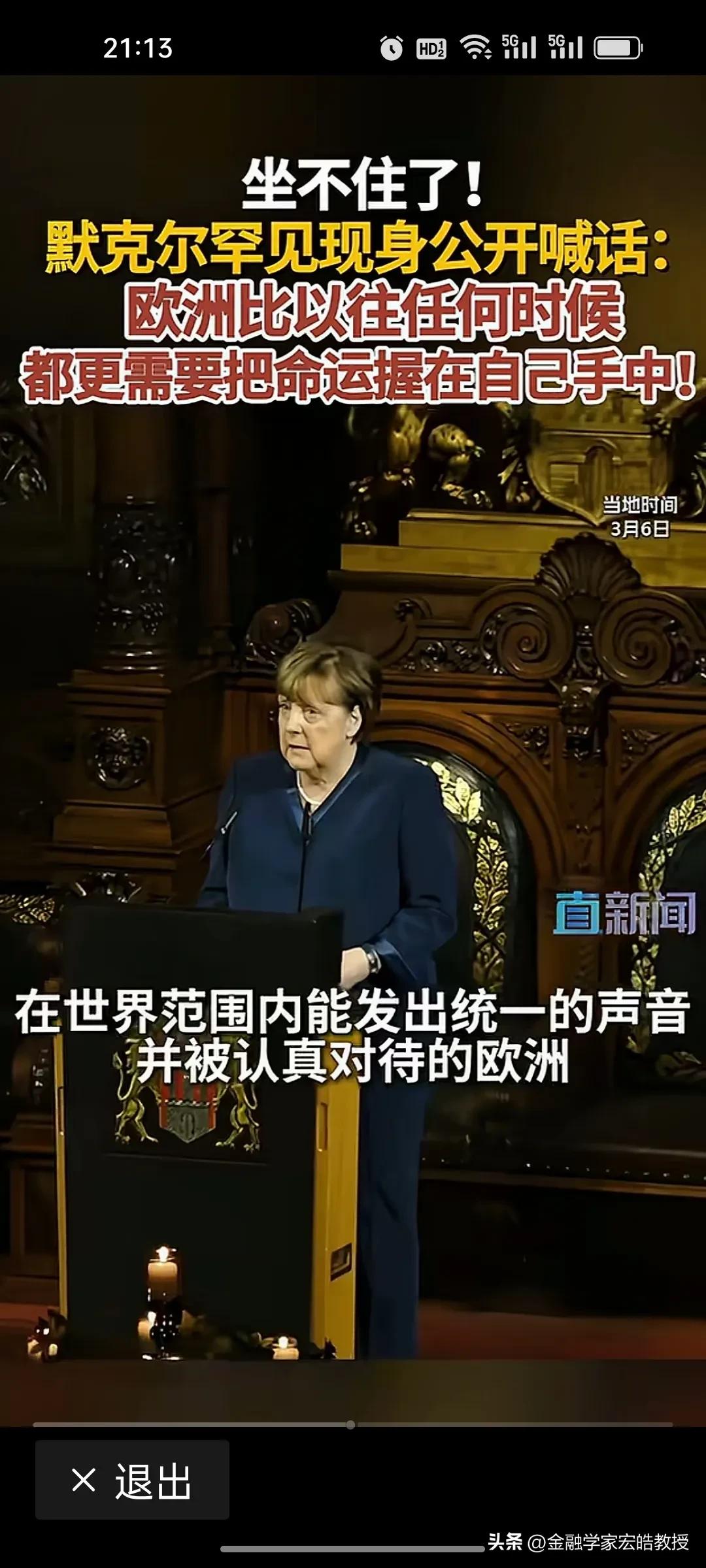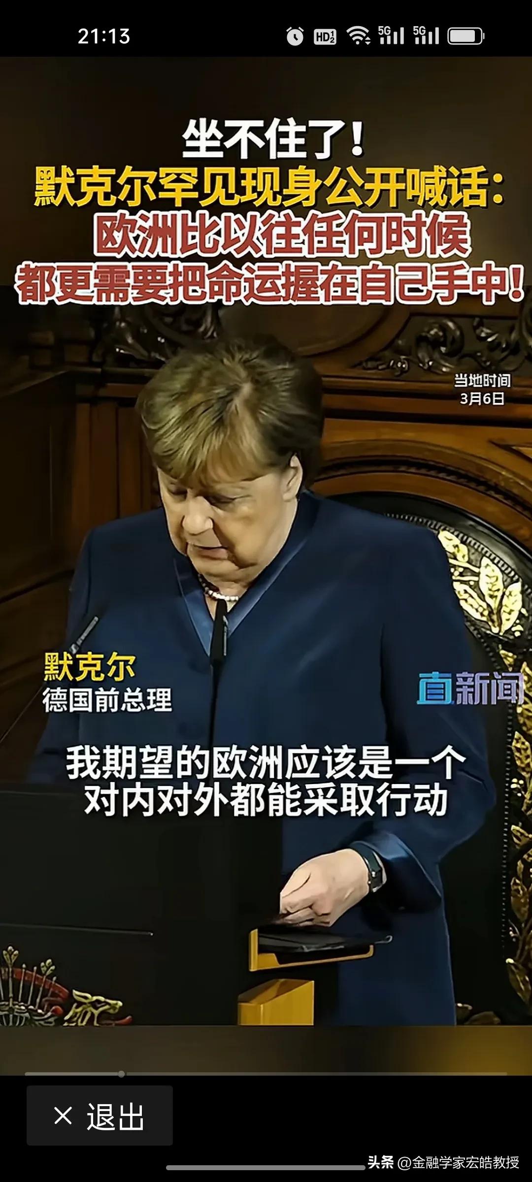 德国前总理,执掌德国16年的“铁娘子”默克尔近期罕见发声:欧洲现在比任何时候更需把命运掌握在自己手中。 2005年11月至2021年10月,默克尔执掌德国16年,连任四届总理,成为德国历史上任职最长的总理之一。任内她11次访华,是访华次数最多的德国总理,中德关系在她手中迈入“黄金时代”。 数据见证合作深度:中德贸易额从2005年600亿欧元飙升至2021年近2500亿欧元,翻了两倍多,中国连续多年成为德国全球最大贸易伙伴。双向投资超400亿美元,7000多家德企、2000多家中国企业在对方市场深耕,在汽车、新能源等领域合作硕果累累。 在卸任五年后,最近在美伊战争之际,默克尔罕见出来喊话,比起奥巴马说美国衰弱了不同,默克尔这位理性务实的政治家,并不会说德国工业目前已经落后了,而是一语中的,强调大国相处,唯有尊重互信、互利共赢,方能行稳致远。
