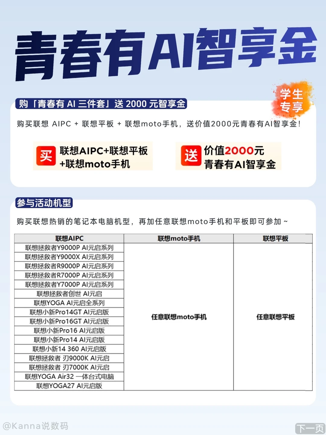 除了购买联想 AIPC,还想买个联想平板+moto手机,直接赠送 2000 元的青春有 AI 智享金~