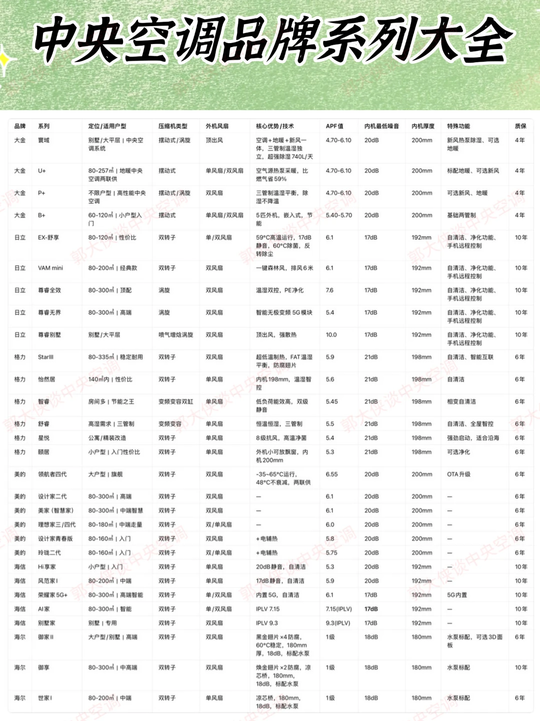大家好,郭大侠来咯✈️ 装修装中央空调,90%的人都选错品牌! 我把大金、日立、格力、美的、海信、海尔 整理成一张对比表,看完直接不纠结! 告诉我你家:各功能区面积+城市+预算 我直接在评论区帮你配型号+报价参考 主页还有更多干货分享哦!