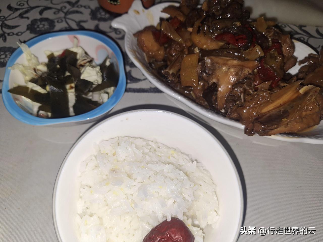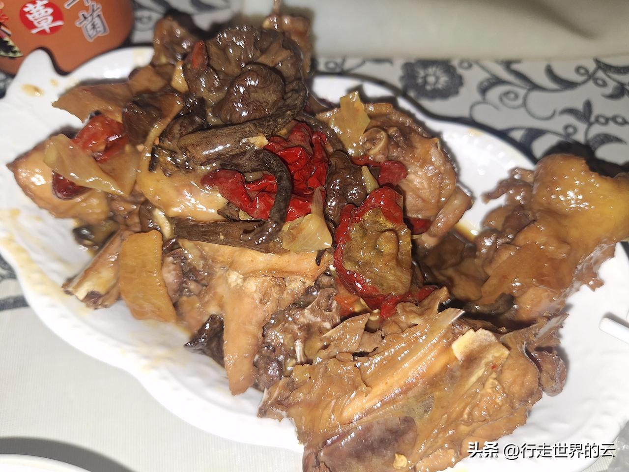 生活所需,半夜做鸡。 长白山的榛蘑与焉耆的辣椒跟鸡块一起炖,味道好极了。