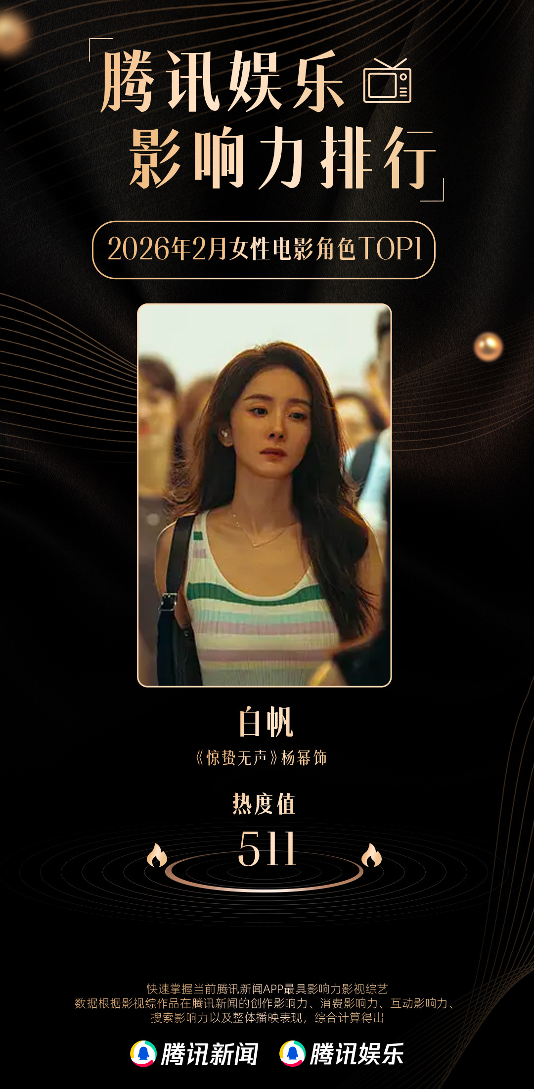腾讯娱乐公布杨幂白帆 为2026年2月女性电影角色Top1,杨幂的表演呈现出成熟