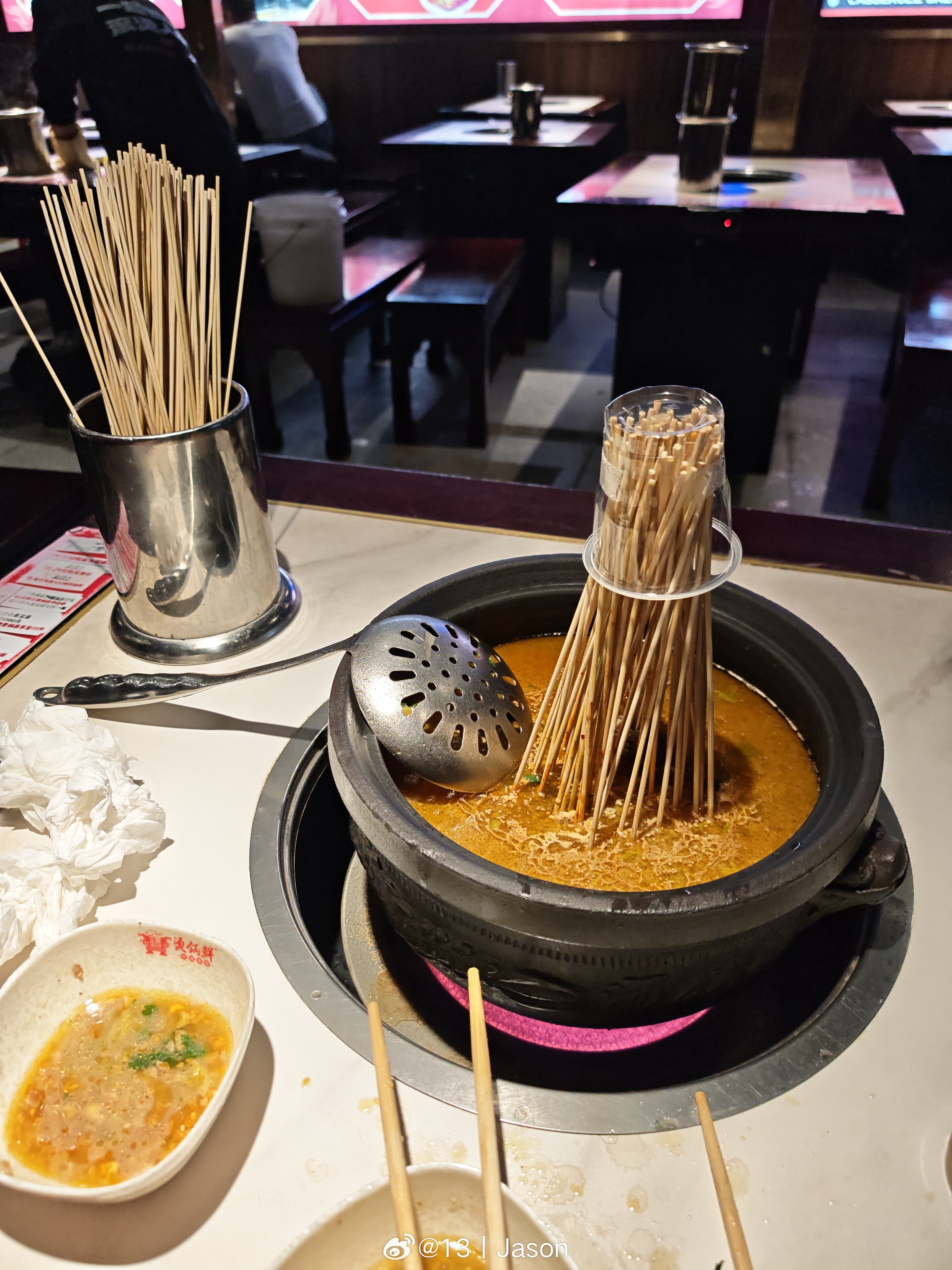 今日份一人深夜食,说是老武汉砂锅串串。轻视了微辣的温柔,领教了中辣的毒打。味道挺