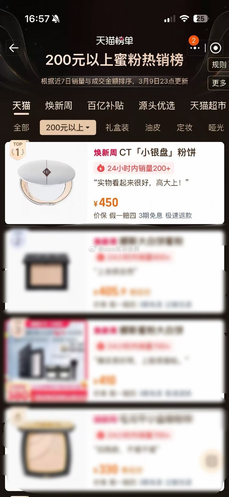 梓渝代言ct改变了品牌品类格局,已经霸榜天喵【高端粉饼】和【油皮粉饼】两个品类第一了