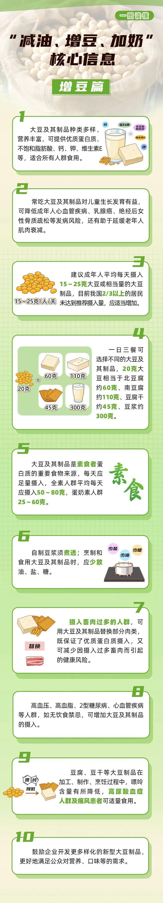 3月9日,全国两会“部长通道”上,农业农村部部长韩俊建议大家适当减油、增豆、加奶。当前,我国居民食物消费中,油吃得多、豆和奶消费偏少,人均烹调用油量超出科学膳食推荐量的40%,人均奶类消费量仅为世界平均的三分之一,大豆及豆制品摄入不到推荐量的60%。农业农村部部长建议大家少吃点油两会观察团