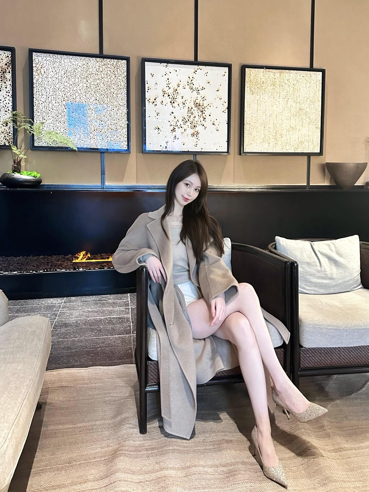冬日暖阳下的优雅穿搭,白色大衣与灰色丝袜的完美搭配,尽显温柔与时尚。