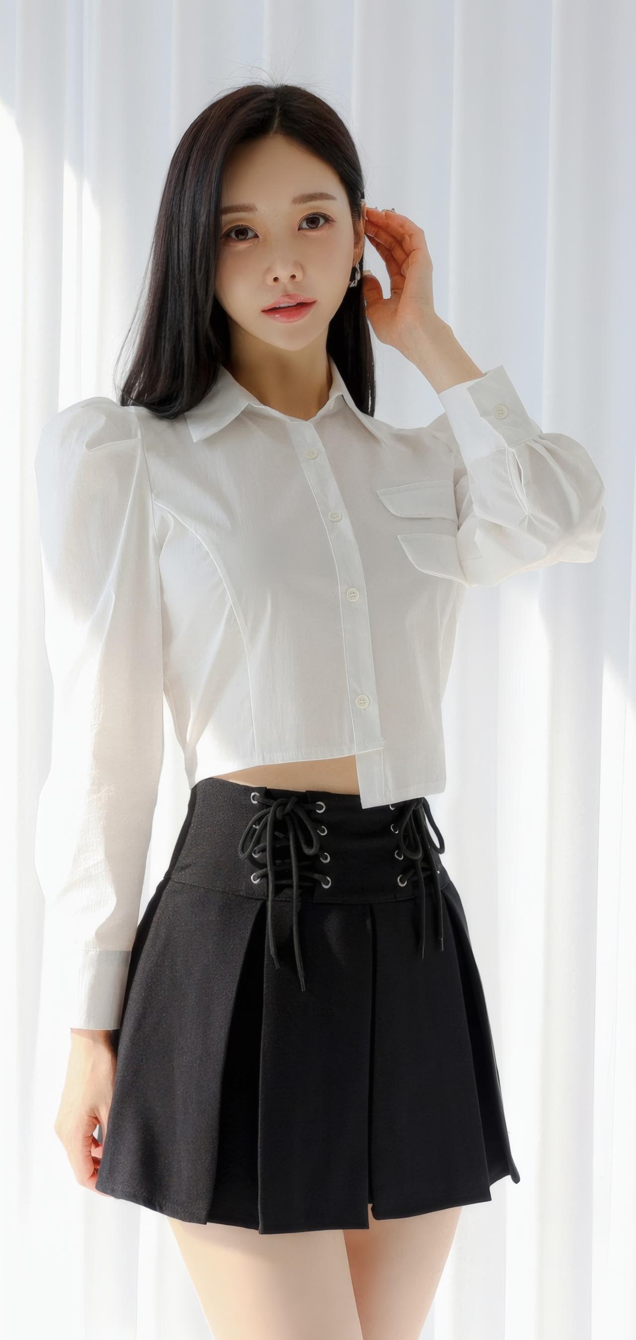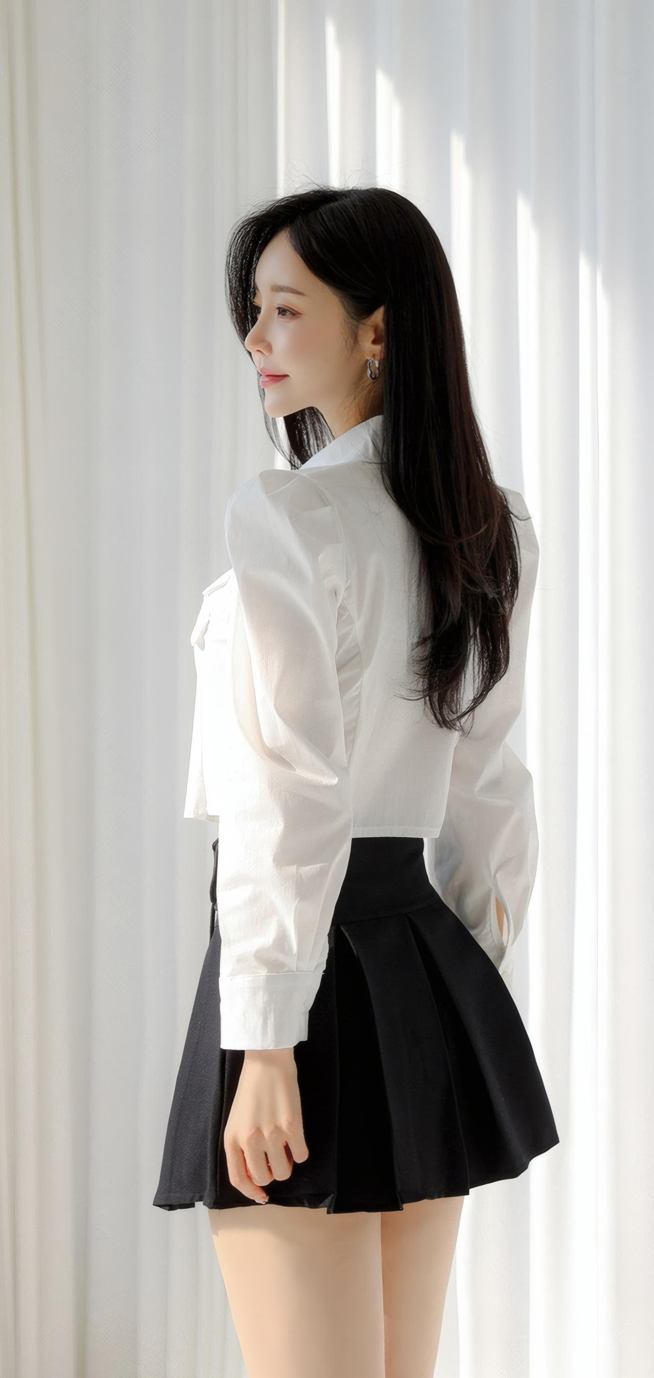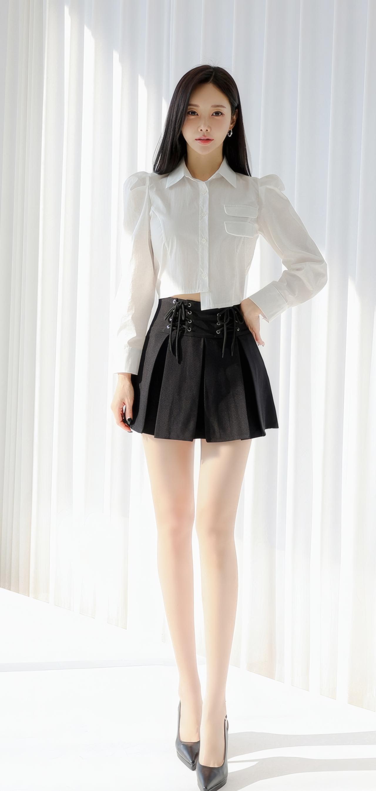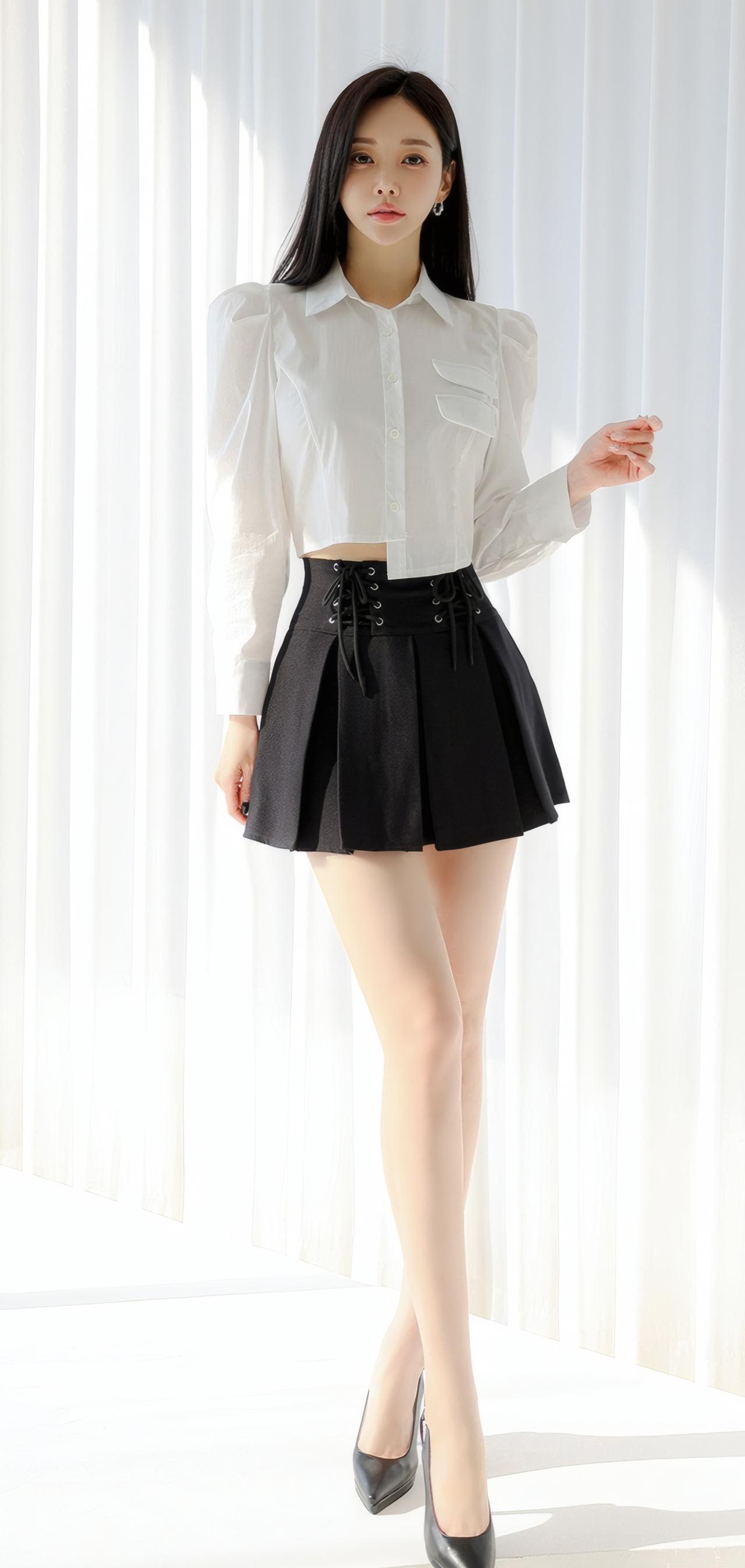 优雅白衬衫+黑色短裙,简约时尚,气质满满!