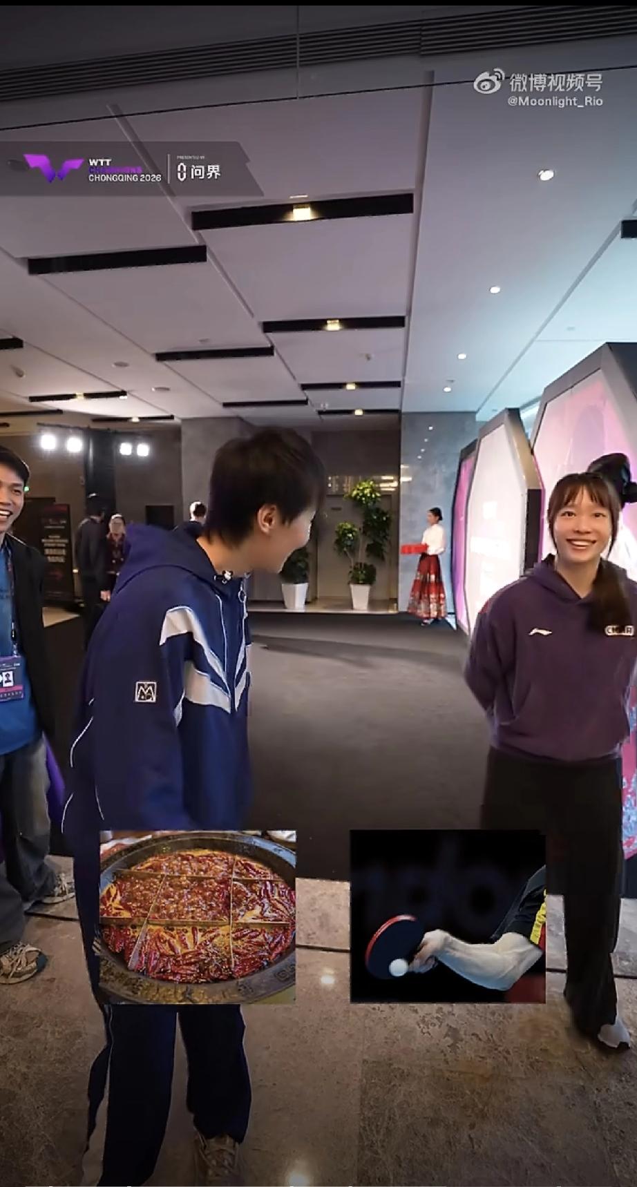 看来欢迎晚宴就是玩和吃火锅两大项目了[笑哭], 2026WTT重庆冠军赛球员欢迎晚宴上,选手们进行了趣味体验,莎莎和周启豪玩了大弹弓,陈熠染了指甲,大迪做了香囊,日韩的小申和桥本也去做香囊了。 然后该吃饭了,事先队员们被问了一个问题,是你的正手辣还是火锅辣,只有黄友政、周启豪、大胖、曼昱、张本智和、松岛辉空、迪亚兹、斯佐科斯、萨马拉等回答正手辣,其他都回答火锅辣,这问题让人挺开心的[笑哭]。