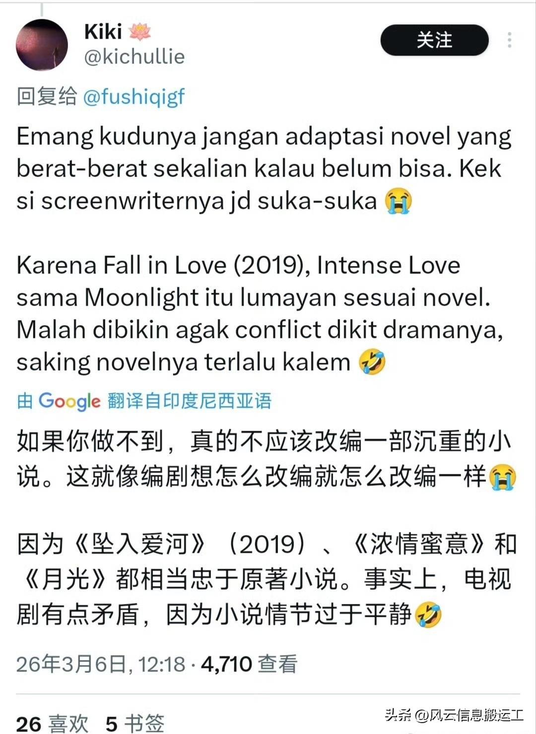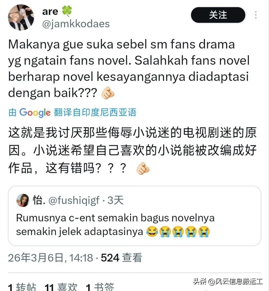 外网上中剧迷表示翻拍小说的中剧,小说越好改变越差!