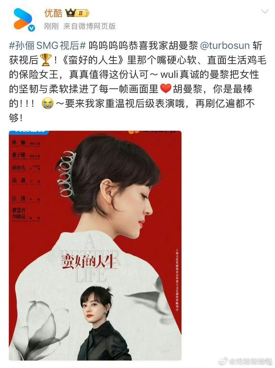 肖战SMG视帝,孙俪SMG视后,优酷赢麻了!腾讯和爱奇艺羡慕哭了