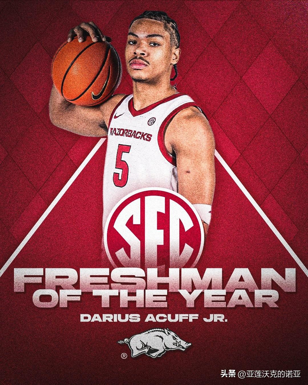 SEC联盟年度最佳球员与最佳新人是阿肯色Darius Acuff Jr,最佳教练是佛罗里达Todd Golden,最佳防守球员是Rueben Chinyelu,最佳第六人是Urban Klavzar,最佳新援是德州Dailyn Swain,第一阵容还有Thomas Haugh,田纳西Ja'Kobi Gillespie,阿拉巴马Labaron Philon,范德堡Tyler Tanner。