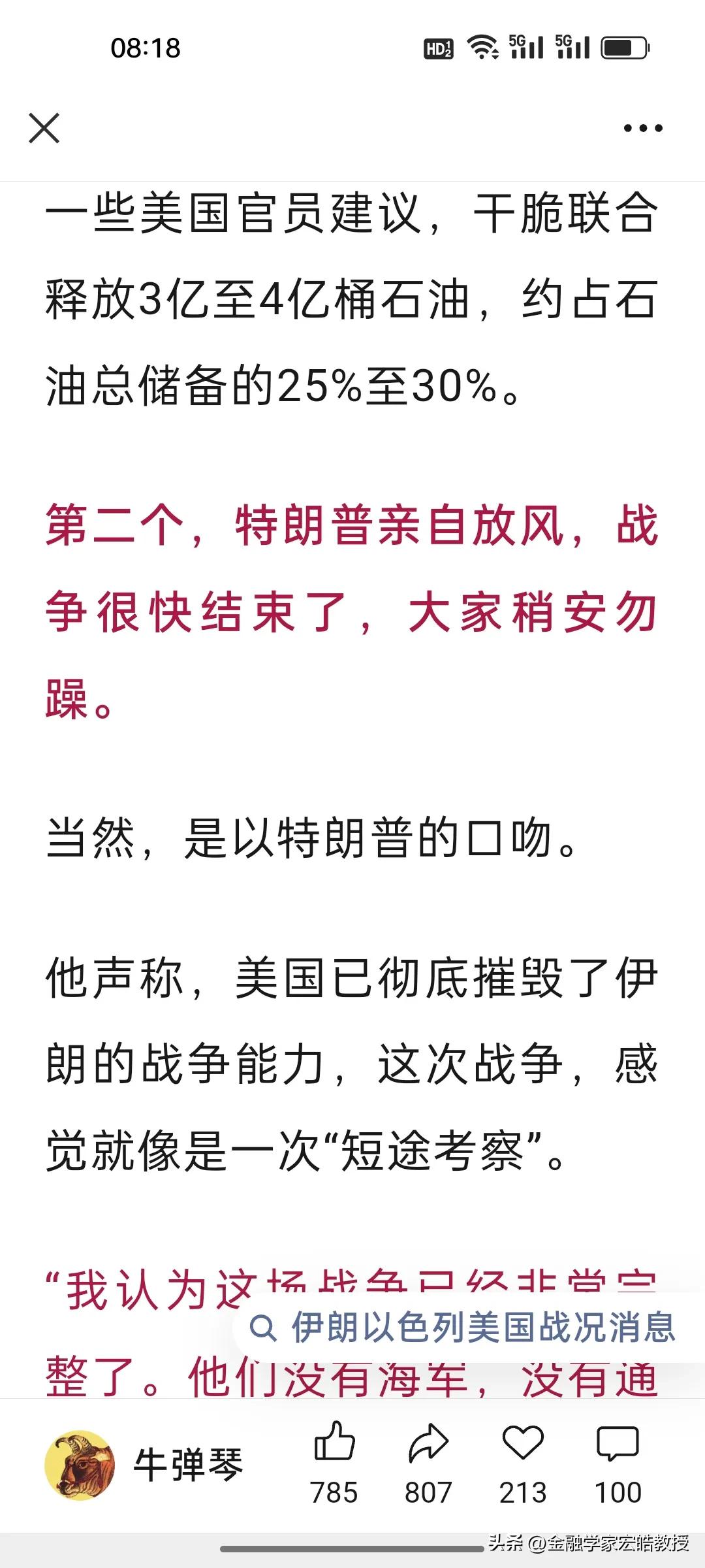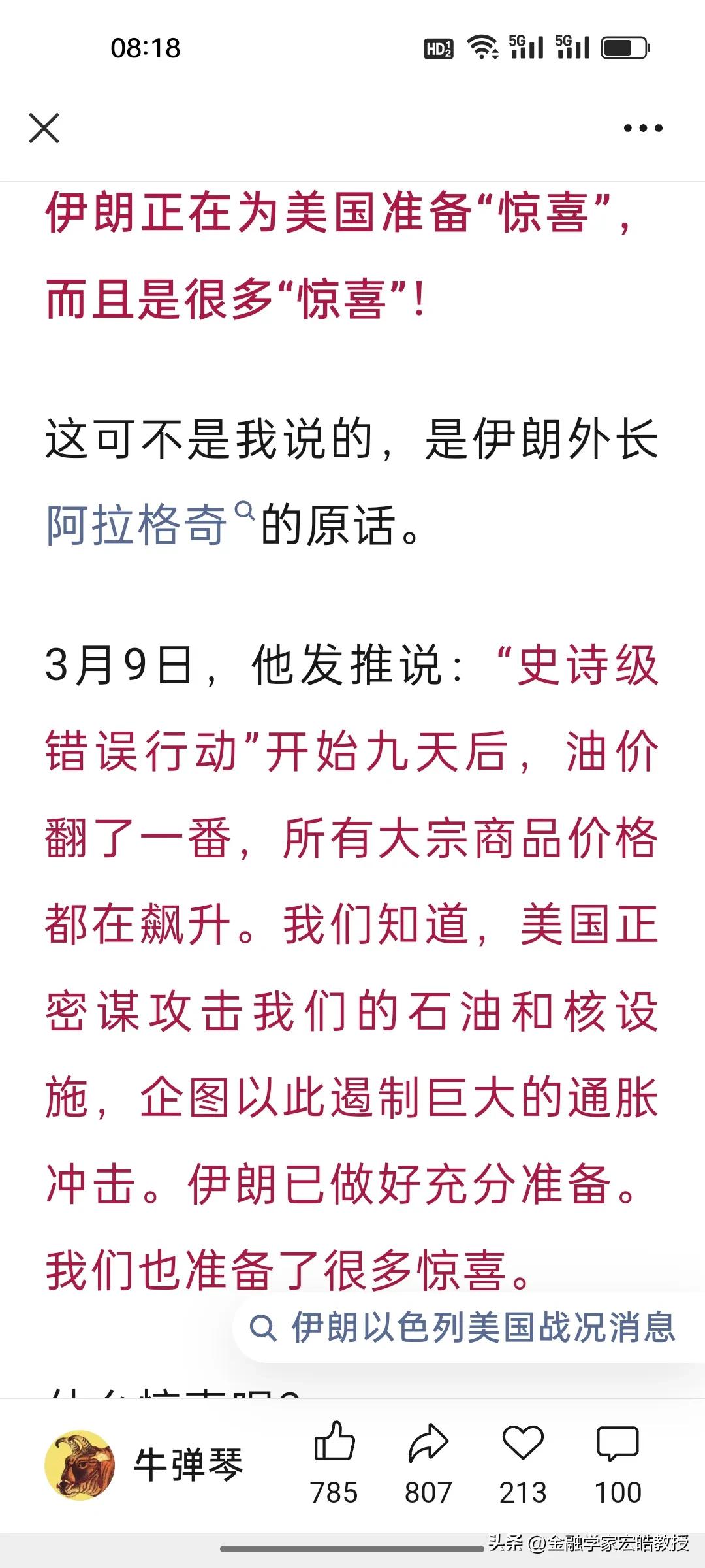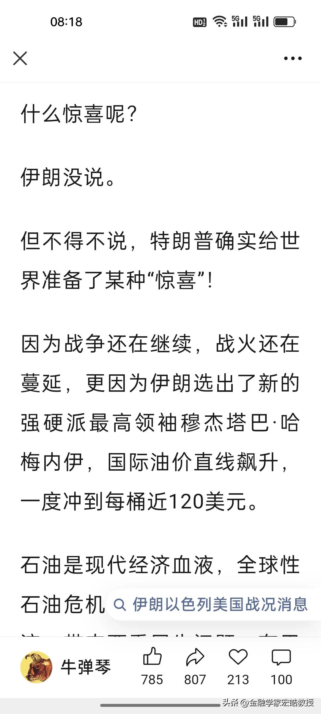 特朗普对美伊战争喊停就有用吗?伊朗外长说“惊喜”还在后面! 刚刷到牛弹琴的文章,越看越心惊:特朗普单方面宣布胜利,不是战争的结束,战争将继续到一方打不动或实在不愿意打为止。 其实当下特朗普说“战争基本结束”了,根本不是和平信号,只是他自己不愿意再继续打了! 伊朗外长昨天放话“准备了很多惊喜”,新领袖又是强硬派,根本不信美国的鬼话。更激烈的冲突、更强硬的报复、更有策略的反击,每一个都能让全球心惊肉跳。 特朗普想靠“胜利宣言”甩锅止损,可伊朗的导弹还没打光,说了至少还能扛6个月,石油这张王牌也攥在手里,欧美船只不能通过霍尔木兹海峡,伊朗能做到“打蛇打七寸”。因此,这场仗,只会打到一方彻底扛不住为止。 对于特朗普的话,也只能听一半,因为他能在24小时内不断推翻自己之前说过的话。当前说“战争基本结束”,暂时能稳住美国的股市不跌和国际油价不大涨,稳住那些中东大金主的心,但真正的较量,或许才刚刚开始。 点火者已经让星火燎原,现在又想亲自灭火,恐怕没那么简单,很有可能被大火反噬。