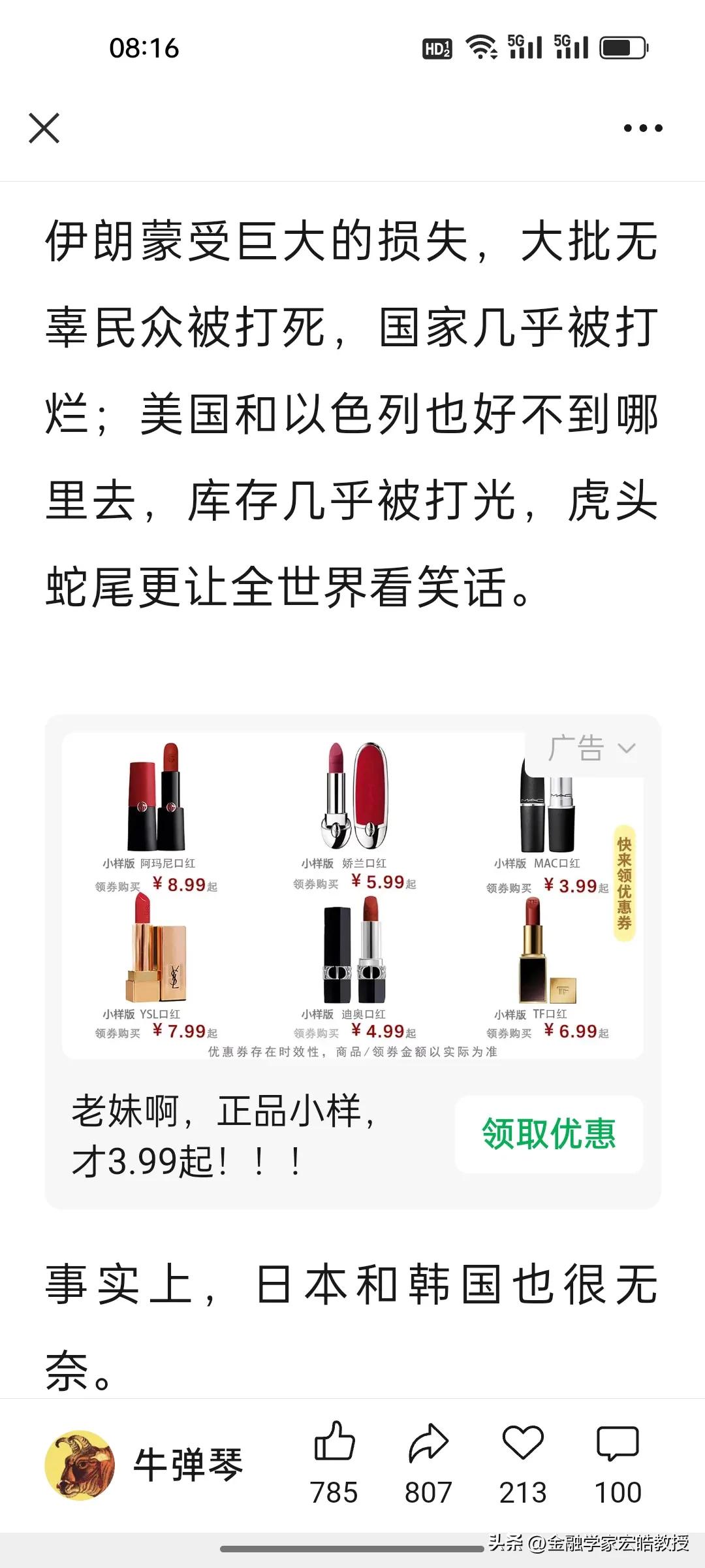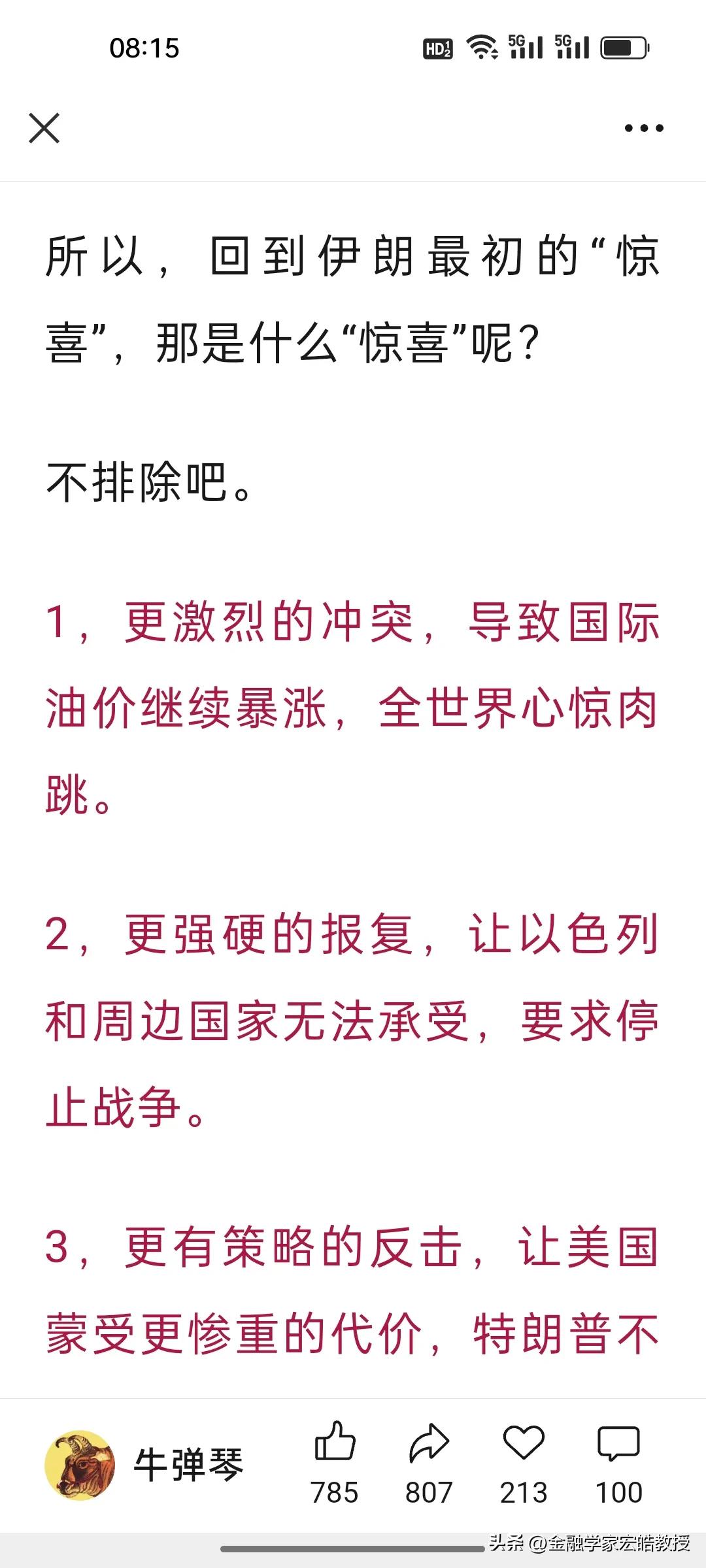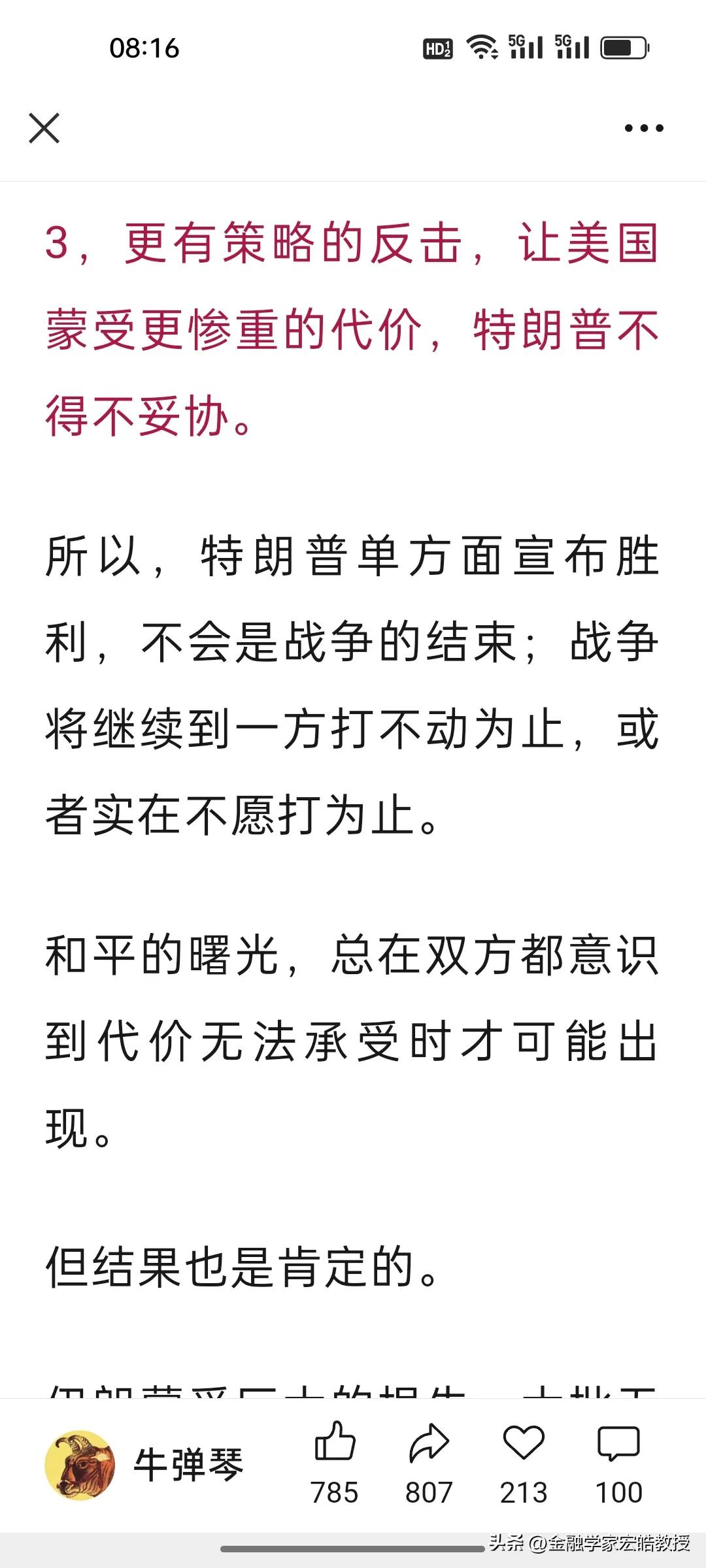 特朗普对美伊战争喊停就有用吗?伊朗外长说“惊喜”还在后面! 刚刷到牛弹琴的文章,越看越心惊:特朗普单方面宣布胜利,不是战争的结束,战争将继续到一方打不动或实在不愿意打为止。 其实当下特朗普说“战争基本结束”了,根本不是和平信号,只是他自己不愿意再继续打了! 伊朗外长昨天放话“准备了很多惊喜”,新领袖又是强硬派,根本不信美国的鬼话。更激烈的冲突、更强硬的报复、更有策略的反击,每一个都能让全球心惊肉跳。 特朗普想靠“胜利宣言”甩锅止损,可伊朗的导弹还没打光,说了至少还能扛6个月,石油这张王牌也攥在手里,欧美船只不能通过霍尔木兹海峡,伊朗能做到“打蛇打七寸”。因此,这场仗,只会打到一方彻底扛不住为止。 对于特朗普的话,也只能听一半,因为他能在24小时内不断推翻自己之前说过的话。当前说“战争基本结束”,暂时能稳住美国的股市不跌和国际油价不大涨,稳住那些中东大金主的心,但真正的较量,或许才刚刚开始。 点火者已经让星火燎原,现在又想亲自灭火,恐怕没那么简单,很有可能被大火反噬。