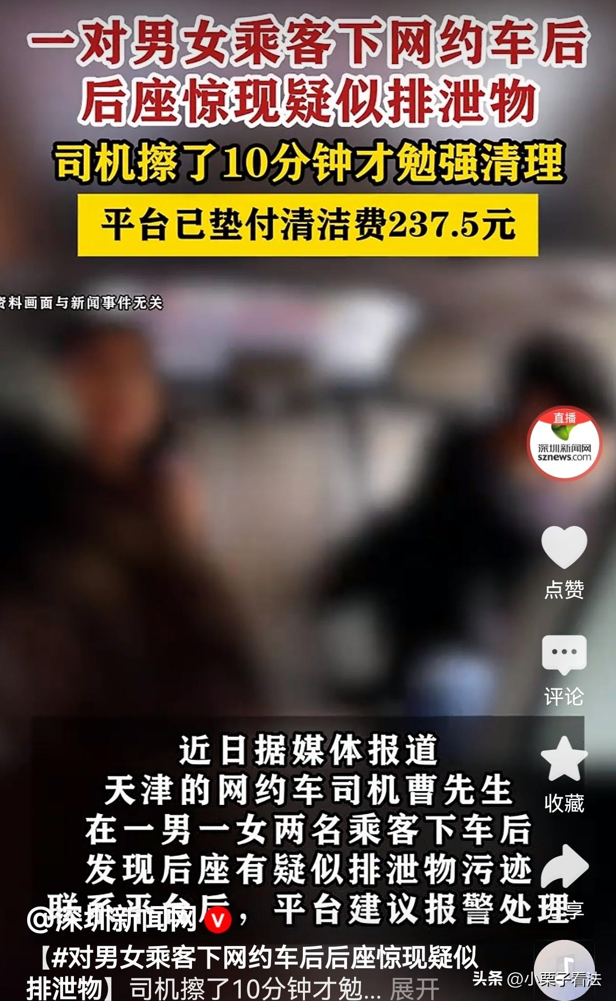 “太恶心了!”天津,网约车司机送完一对年轻男女后,往后座一看,竟发现后排坐垫上糊着一堆土黄色,稀稀的东西,看着就像人的排泄物。司机恶心的不得了,戴了两层口罩才收拾干净。恶心之余他觉得特别气愤,年轻人看着光鲜亮丽,怎么素质这么低,能干出这种事。于是,他联系平台要求赔偿,但平台的回复让他无语。 近期爆出来的天津某网约车事件,真是让人膈应到心里头。 深夜十点多,街头来往的车辆渐渐减少,却正是网约车司机们的接单高峰,也是他们一天中最疲惫的时候。 这对乘客刚从商场出来,上车时女生还特意跟司机交代,自己有点晕车,让司机开慢一点。 司机也是个实在人,一听这话,立马放慢了车速,把车内空调调到适宜的温度,又悄悄打开一点车窗通风,全程小心翼翼,半点不敢怠慢。 一路上,两人坐在后排小声闲聊,偶尔传来几声嬉笑。 十几分钟的路程,转眼就到了目的地。 幸亏司机有个好习惯,每当乘客下车的时候,都会再去后排检查一下,万一乘客再落下什么私人物品啥的。 果不其然,他俩还真给司机了一个“意外”的惊喜。 后排座位上的异物让司机直呼“恶心”,可想要再去找乘客的时候,他俩早不知跑到什么地方去了。 没人能体会司机当时的心情,恶心、气愤、委屈,各种情绪交织在一起。 后座弄成这样,根本没法接下一位乘客,一旦被其他乘客看到,不仅会被投诉,还会砸了自己的口碑,后续的订单都会受到影响。 清理的过程,堪称一场煎熬。 那堆秽物牢牢粘在坐垫上,擦一下就干呕一次,眼泪都被呛出来,手里的湿巾换了一张又一张,前后用了二十多张,反复擦拭了好几遍,连坐垫缝隙里的残留物都没放过,生怕留下一点痕迹。 擦完之后,又用消毒喷雾把整个后排喷了一遍又一遍,车窗全程敞开。 哪怕深夜的晚风刺骨,也不敢关上,就是为了能把那股刺鼻的异味散掉。 这半个小时的清理,不仅消耗了大量的清洁用品,更耽误了司机接单,损失的都是实实在在的收入,也耗尽了司机的耐心和隐忍。 更让人无语的是,司机抱着一丝希望,联系网约车平台维权,希望能得到一个公道。 他的诉求很简单,不需要多高的赔偿,只想要回自己花的清洁用品费用,以及清理期间耽误接单的损失。 可哪怕司机反复强调,自己有车内监控,能完整还原整个过程,客服也依旧不为所动。 说什么监控只能证明乘客上下车的时间,不能直接证明秽物的归属,还找借口说,平台没有权利私自调取乘客的个人信息,也没法强制乘客配合调查。 更可笑、更可气的是,平台还建议司机报警处理。 暂且不说别的,这事虽然恶心,但要是出动警方,是不是显得”没事找事“,这种小纠纷平台明明就能处理好,为什么还要麻烦警方呢? 最终,平台还是垫付了洗车费和清洁费,这件事也算是完美解决了。 司机的心里头还是有些无语。 看上去光鲜亮丽的年轻人,竟然能做出这样奇葩的事情,实在是太气愤了! 难道以为只要穿得好、长得好看,就算干出龌龊不堪的事,也不会被人指责? 可他们忘了,素质和外表无关,人品和穿搭无关,一个人就算穿得再体面,干出没素质的事,也只会让人觉得恶心、让人不齿。 要是他们还有一点良心,还有一点做人的底线,就应该主动站出来,向这位司机道歉,赔偿司机的损失,好好反思自己的行为。 对于这件事,您有什么想说的吗?欢迎评论区留言讨论。 信息来源:深圳新闻网