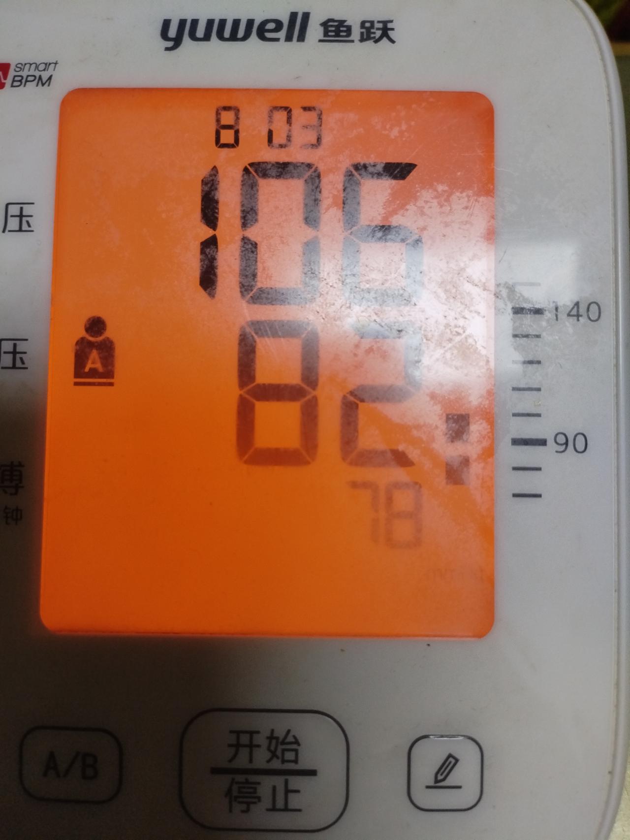 前段时间时间血压一直在140-93左右,看了好几家医院,在第一家医院一量血压也是也挺高的,医生给开了2种药,有个是每天吃一次,另外一个是每天吃3次,我就不想吃药,还跟医生讨价还价,医生说我不承认自己是高压,临近过年了,就一直没去别的医院看,渝是乎,这过年10来天我注重饮食,不吃太油腻的,一颗糖都没有吃,零食更是没有尝,每天就吃点米饭,瘦肉,鱼之内的,水果少许吃一点,没有贪嘴,同时每天跳一场健身操,过年下来,瘦了4斤,挂了另外一家医院再看了看,医生看我24小时的监测数据,说暂时不用吃药,控制体重,监测血压,健康饮食,先调整三个月看看,今天一量,血压是这个值。