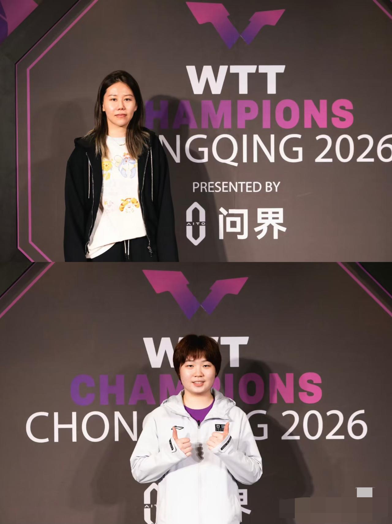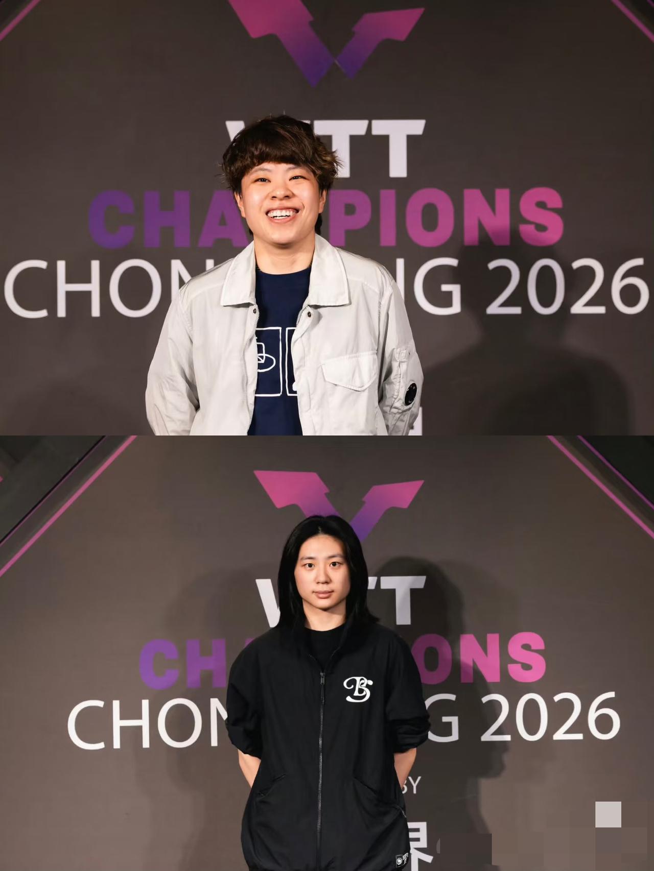 2026WTT重庆冠军赛欢迎晚宴中国队队员照片——陈幸同与周启豪穿得是同款情侣服