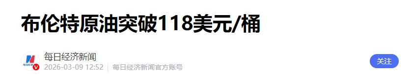 特朗普通告全球,留给高市早苗的路只有两条:要么求中国,要么求俄罗斯! 中东局势,持续恶化。就在前几天,伊朗的导弹精准落在了以色列规模最大的海水淡化厂。对于本就极度缺水的以色列来说,这几乎是断了生机。 紧接着,北部海法市的炼油厂也在3月7日晚间被导弹击中。大火照亮了夜空,也烧掉了以色列国防体系的燃油储备,那里供应着全国六成的柴油和八成的军用航空燃油。 但这把火的影响远不止于地中海东岸。战火一起,布伦特原油价格迅速冲破每桶118美元。这个数字对于资源匮乏的日本来说,就是实打实的生存危机。 长期以来,以高市早苗为代表的一批日本政客,习惯于在外交舞台上展示强硬姿态。然而,波斯湾局势一旦动荡,这种缺乏资源支撑的“硬气”就显得非常脆弱。 目前,大约有30艘满载原油和液化天然气的巨轮正滞留在波斯湾,进退两难。日本进口原油的95%都要经过霍尔木兹海峡,只要这条航道出现波动,日本的能源供应就会停滞。 东京电力公司已经发出了供电红色预警,如果燃料无法按时抵达,大面积的工厂停工将不可避免。 更让日本感到不安的是,原本依赖的“保护伞”正在失效。华盛顿目前的战略重心正在回归本土,比起为盟友承担失控的冲突风险,美国现在更看重自身利益。 此前美国试图组建联合护航编队,结果反响寥寥,这让日本清醒地意识到,所谓安全承诺的含金量正在大幅缩水。 日本必须面对一个现实,作为一个没有任何资源缓冲空间的国家,频繁提升对抗调门是不理智的。 在现在的国际局势下,重新审视邻里关系已成为日本的存续之道。中国是日本搬不走的邻居,也是不可替代的贸易伙伴。 维持地区局势平稳,远比在敏感问题上制造摩擦更符合日本的根本利益。如果能源通道受阻的同时,又切断了经贸后路,后果将是灾难性的。 而在北方,俄罗斯掌握着天然气和石油的出口开关。日本此前盲目跟进外部制裁,结果制裁尚未见效,国内的能源账单却先失控了。这种局面充分说明,在生存需求面前,所谓的“政治正确”无法发电,也无法驱动工厂。 一个国家的安全感不应该建立在挑动对抗的基础上。激进的政客通过强硬表态赢得了政治选票,却把整个国家的经济前途推向了赌桌。 全球能源秩序正在发生根本性改变。对于日本来说,摆脱陈旧的对抗思维,回归理性与务实,才是保住民生根基的唯一选择。 毕竟,真正的强大不在于嗓门有多大,而在于对现实环境有清醒的判断。在资源主权回归的时代,务实合作才是活下去的钥匙。 信息来源:《布伦特原油突破118美元/桶》,每日经济新闻。