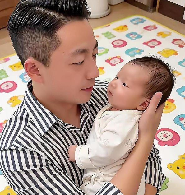 一张汪小菲怀抱新生儿的照片引发热议 画面中,他穿着简约的条纹衬衫,动作轻柔地托着