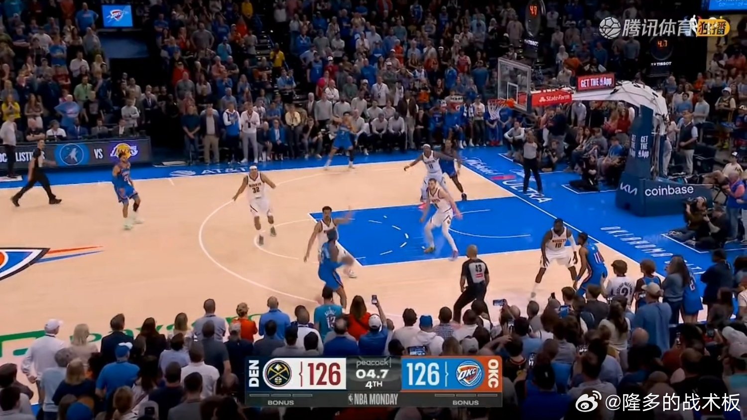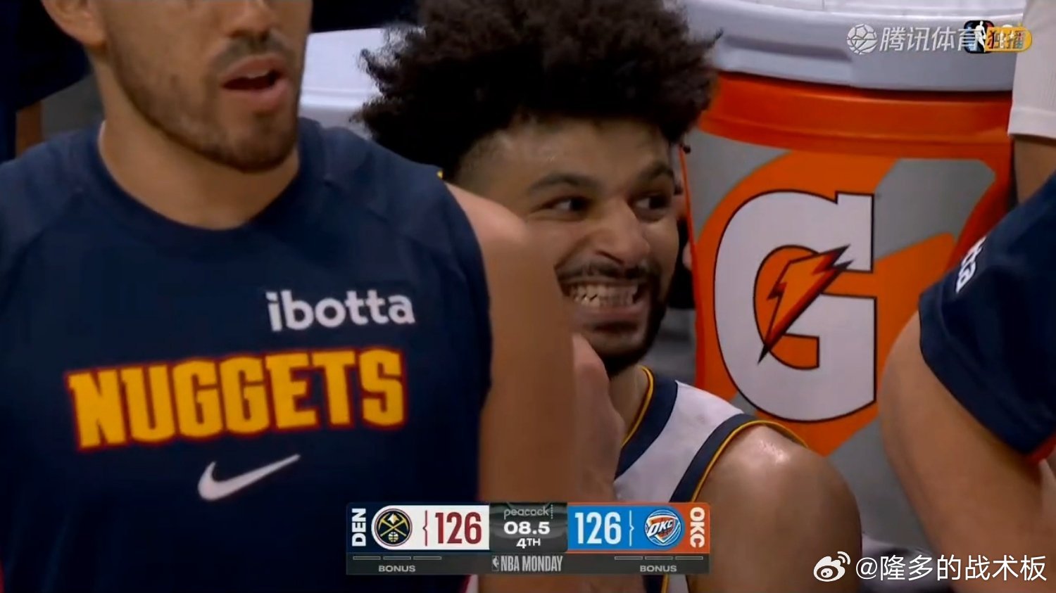 掘金场上是琼斯+布劳恩+布朗+哈达威+戈登,打全换防,接受被单打解决也不想漏防。如果SGA打突分,这套阵容轮转速度也会比较快掘金vs雷霆