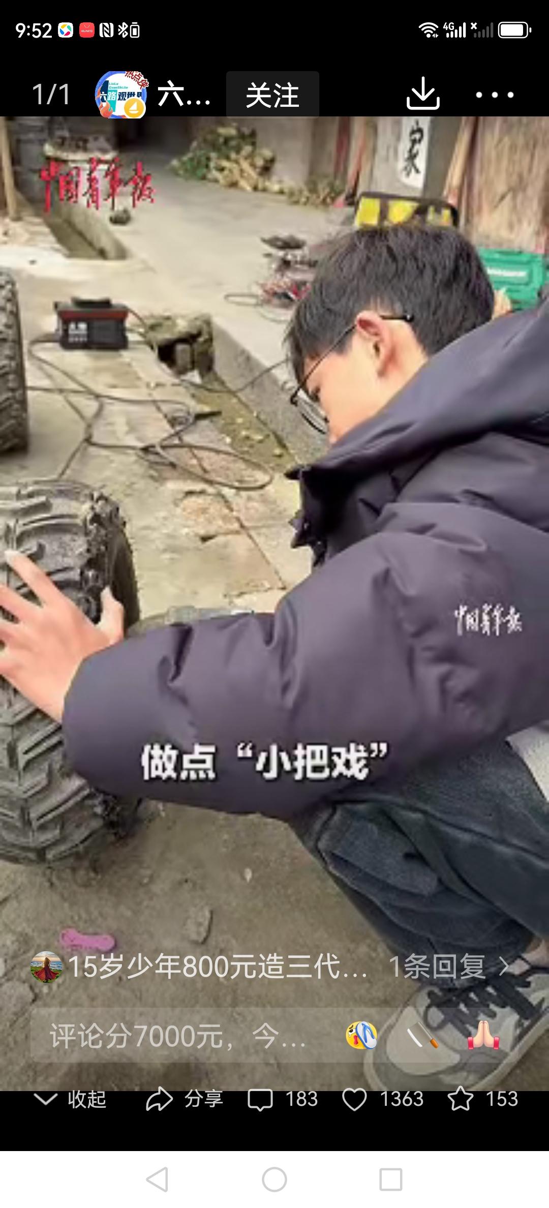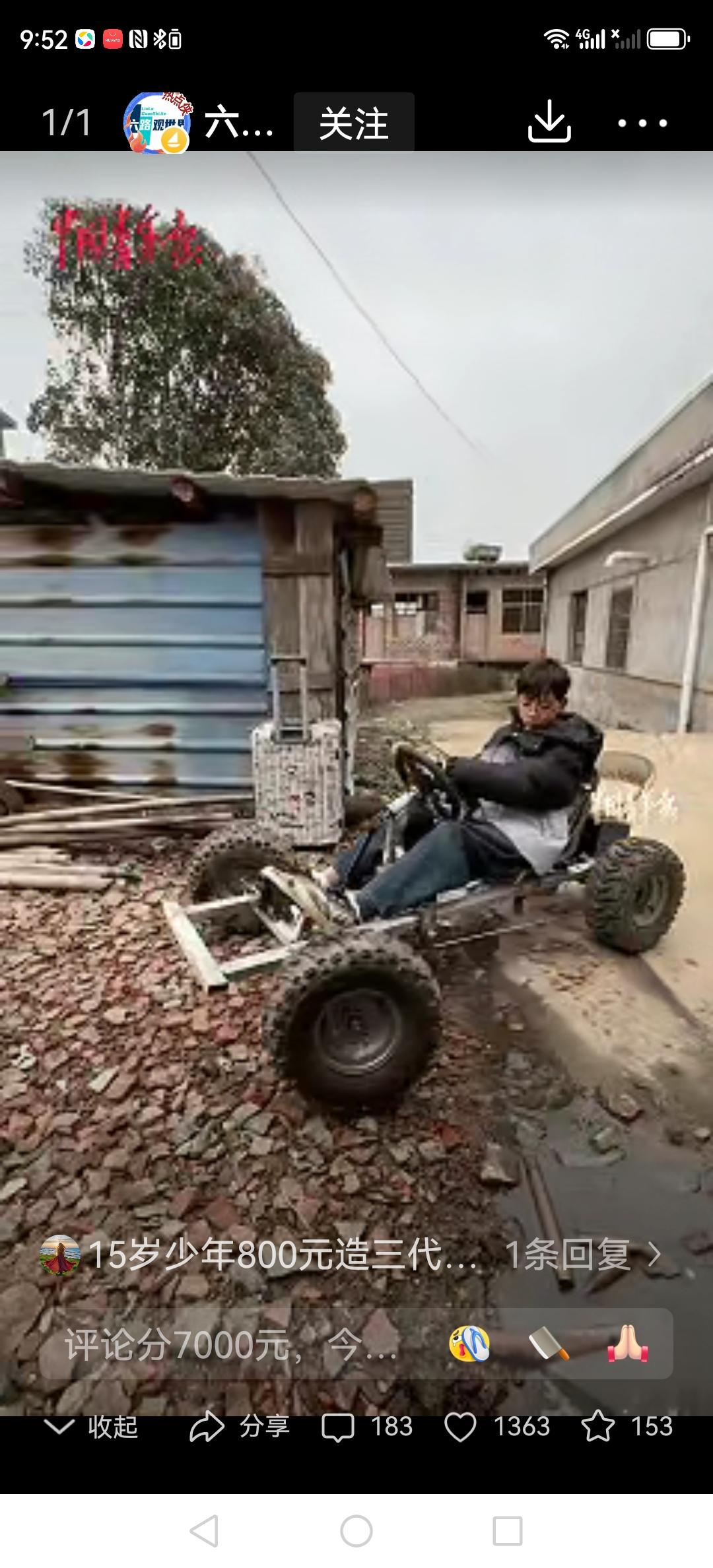 湖南邵阳一个15岁的少年刘开明最近可火出圈了!别人在刷短视频、打游戏的时候,他却一头扎进了电路研究里,偷偷用攒了好久的800元压岁钱,捣鼓出了自己的第三代电动车,续航能达到50公里,这波操作直接让网友们都惊叹“真是个小天才啊”! 这孩子可真不一般!在武冈三中读书的刘开明,别人把课余时间花在刷手机上,他却全用在了研究电路上。光从想法到零件组装,就花了整整两个半月的时间,每一个细节都自己琢磨。更厉害的是,等所有零件都凑齐了,他一天半就拼好了,这动手速度,估计不少成年人看了都得自愧不如吧? 让人更感动的是,他还是个孝顺的小暖男。一开始怕奶奶担心不同意,就偷偷琢磨着搞点小发明,不仅给奶奶家的老房子装了智能控制器,还重新规划了太阳能灯和浴霸的线路,就想让奶奶住得更舒服些。他还说以后想带着奶奶去看看外面的世界,这份孝心啊,比那辆电动车珍贵多了! 造这辆车的成本才800块,还不到市面上同类车价格的三分之一,性价比真的太高了。虽然在山路上实际测试续航只有30公里,但对一个15岁的孩子来说,已经是个了不起的奇迹了。网友们都在说,这孩子要是好好培养,将来肯定能成为“熊猫工业”的栋梁之才! 少年强,则国强啊!这样敢想敢做的少年,是不是特别需要一个更好的发展平台呢?大家觉得学校应该怎么培养这种有创新精神的孩子呢?(悄悄说一句,我15岁的时候还在琢磨怎么抄作业不被老师发现呢...)
