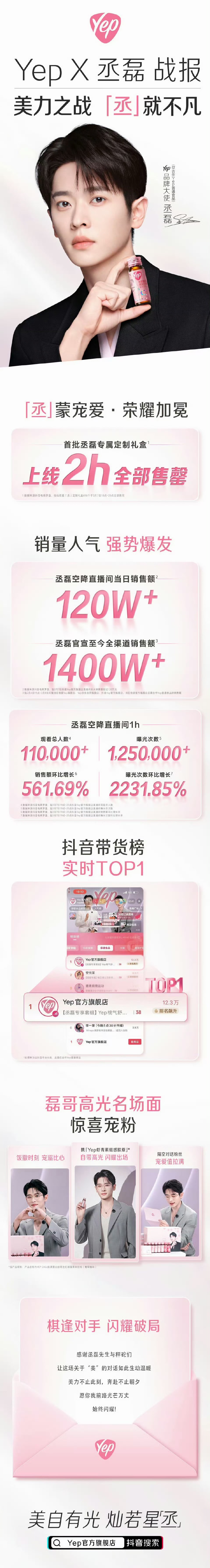 丞磊yep直播官方销量战报,2H极速售罄,单日销售额突破 120 W+,官宣至今