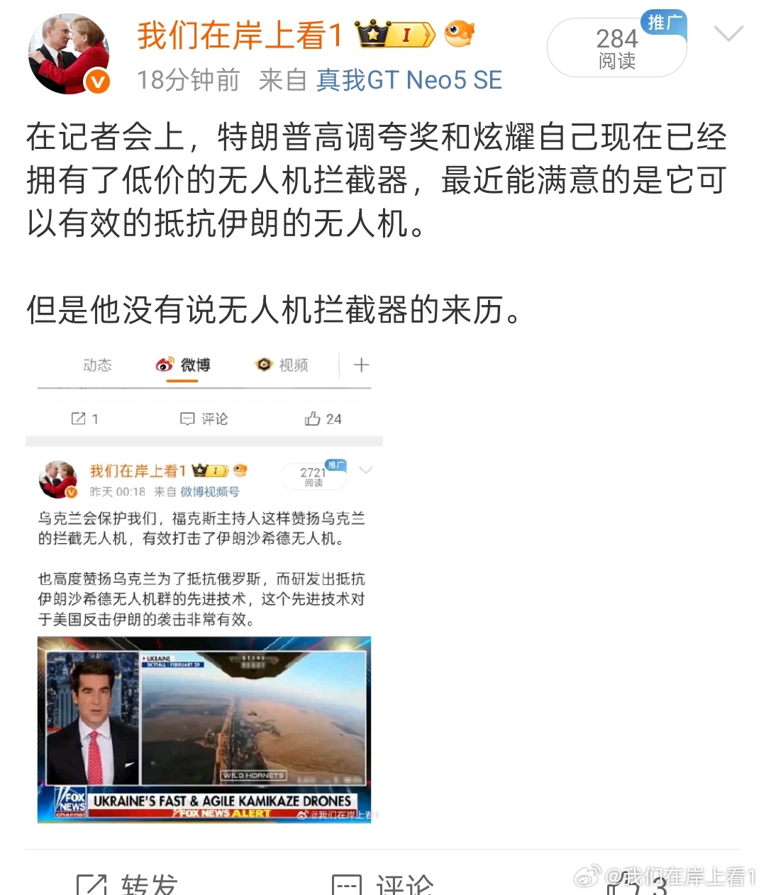 特朗普儿子投资的公司,向五角大楼出售采用乌克兰技术的无人机。
