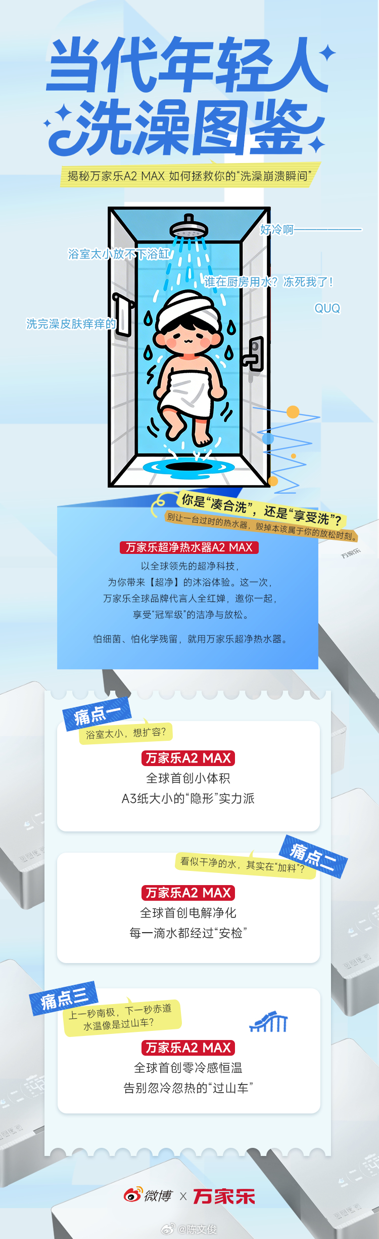 兄弟们还记得万家乐这个厂牌吗?我小时候家里的第一个热水器就是万家乐。最近,他们签了全红婵作为品牌全球代言人。并且还带来了全球首创的最小体积热水器 A2 MAX!不止是小,A2 MAX还具备超强的电解净化科技,通过超微纳米氢氧气泡、锶硅锌三大滋养元素,带来不只是凑合洗,还有「洗得干净」的沐浴效果。总之,超强!全红婵新身份曝光