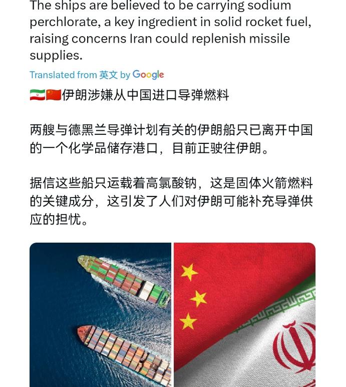 伊朗紧急从中国进口导弹燃料?3月9日,外媒报道称,与德黑兰导弹项目有关的两艘伊朗船只已经离开中国的一个化学储存港口,目前正驶往伊朗。外媒称,据信,这些船只携带了高氯酸钠,这是固体火箭燃料的关键成分,这引发了人们对伊朗可能补充导弹供应的担忧。 说白了,外媒炒作伊朗从中国进口高氯酸钠“补充导弹燃料”,表面是渲染“中伊军事协作”,实则是借议题碰瓷中国、抹黑中方中立立场,本质是为美以持续施压伊朗制造舆论借口。 要知道,3月9日外媒突然抛出“两艘伊朗船只携高氯酸钠离华赴伊”的消息,还刻意强调该化学品是“固体火箭燃料关键成分”,把普通化工贸易与“导弹补给”直接挂钩。就在美以空袭伊朗导致其导弹燃料储备告急、远程打击能力受限的节骨眼上,这种带节奏的报道精准配合了西方“中国助伊扩军”的叙事,可中方早有明确表态,美国多年监控也未拿出实锤,这操作活像凭空捏造罪名。 可这绝非客观报道,而是外媒无视事实的选择性炒作。高氯酸钠本身是军民两用化学品,既可用作火箭燃料原料,更广泛应用于玻璃陶瓷制造、染料生产、工业漂白等民用领域。中国作为全球化工出口大国,中盐内蒙古化工等企业常年向全球出口同类产品,远销欧美、日韩等国,仅凭“船只离华”就断定“供应导弹燃料”,无异于把菜刀出口等同于支持暴力犯罪,逻辑根本站不住脚。 说实话,中方对两用物项出口管控堪称全球最严,绝不可能违规输出敏感物资。根据《中华人民共和国两用物项出口管制条例》,高氯酸钠作为易制爆危险化学品和两用物项,出口需经商务部等多部门联合审批,还要提交最终用户和用途证明,全程接受严格监管。此前以色列大使炒作类似议题时,中方已明确驳斥“毫无依据”,强调从未向冲突方提供武器相关物资,这种监管力度下,所谓“违规出口导弹燃料”纯属无稽之谈。 殊不知,外媒炒作背后藏着多重算计。一方面,美以想借“中国助伊”的虚假叙事,倒逼中方收紧对伊贸易,切断伊朗潜在的物资补给渠道;另一方面,也想转移国际社会对美以空袭伊朗平民、破坏地区稳定的关注,把自身军事行动包装成“应对威胁”。更讽刺的是,美国曾以“协助伊朗采购高氯酸钠”为由制裁中国企业,却始终拿不出实质性证据,本质就是借制裁施压、干扰正常贸易。 更关键的是,伊朗导弹燃料生产早已实现自主化,无需依赖中国进口。国际原子能机构报告显示,伊朗弹道导弹的固体燃料推进技术已形成独立产业链,其关键推进剂材料主要靠国内生产。尽管美以空袭摧毁了部分生产设施,但伊朗仍能通过本土产能维持短程导弹供应,所谓“紧急从中国进口补充”,完全是对伊朗军事工业能力的误判。 要清楚,历史上西方多次借“两用物项”炒作“中国扩散”,但从未有一次能拿出确凿证据。大国博弈中,舆论抹黑是常用手段,可事实终究经不起推敲。中国坚持不向冲突双方出售武器,严格管控两用物项出口,这一立场始终明确且一贯,不会被虚假叙事裹挟。 而未来,外媒大概率会继续翻炒此类议题,美以可能还会借机加码对中伊相关贸易的制裁施压。但中方大概率会坚持既定管控政策,继续依法开展正常化工贸易,同时坚决驳斥不实指控、维护自身权益。关键转折点就看美以是否会拿虚假报道当借口升级对伊行动,可这种基于谎言的施压,只会让国际社会更看清其霸权本质,根本达不到预期目的。 说到底,这波外媒炒作本质是“中国威胁论”的老调重弹,是美以转嫁矛盾、施压中方的舆论操弄。高氯酸钠的民用属性、中方的严格管控、伊朗的自主产能,都足以戳破这一谎言。中国始终是国际公平正义的维护者,不会因舆论抹黑改变中立立场,也不会放任正常贸易被政治操弄裹挟,任何试图借议题碰瓷中国的图谋,终将徒劳无功。 以上是小编个人看法,如果您也认同,麻烦点赞支持!有更好的见解也欢迎在评论区留言,方便大家一同探讨。
