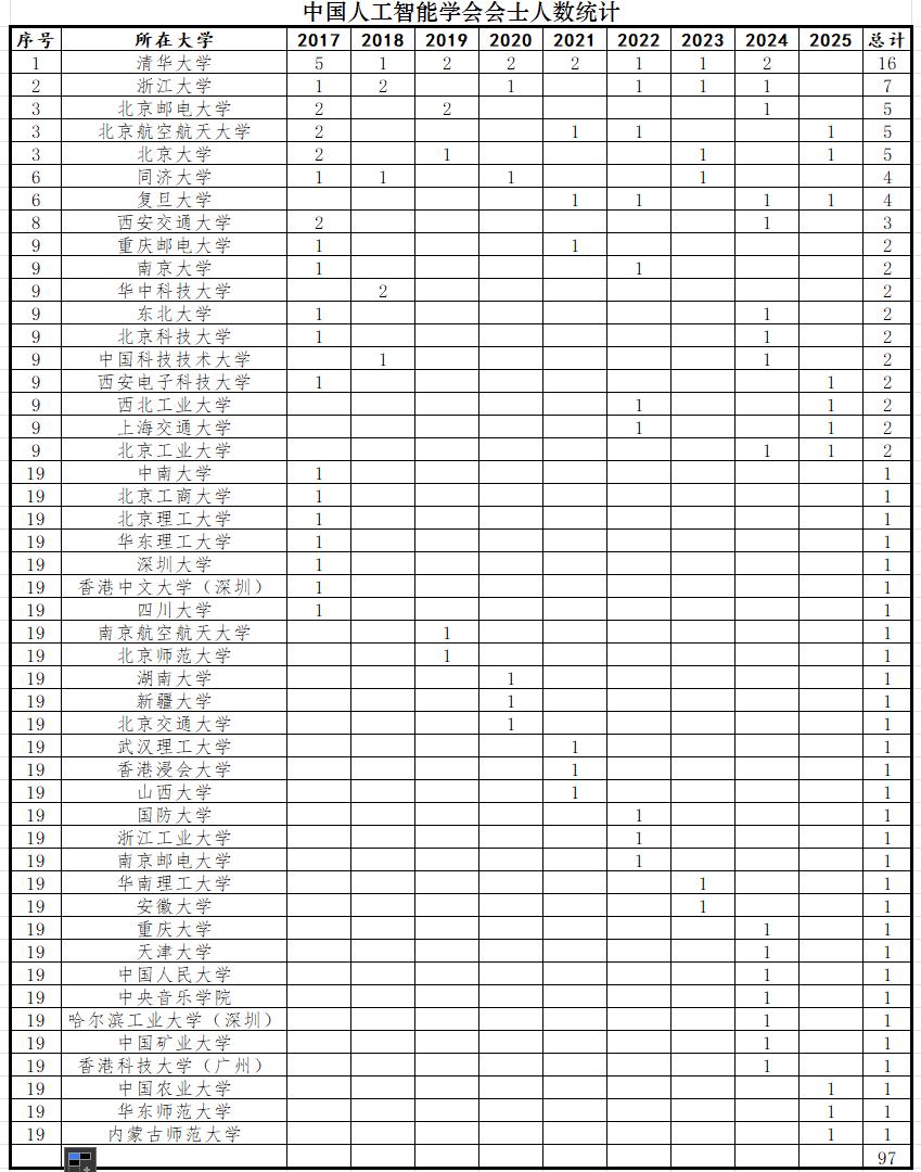 9人新晋为CAAI会士,西安交通大学、西北工业大学和西安电子科技大学CAAI会士总数已排进全国前十。在选择导师时,如果能够成为CAAI会士的学生,你将获得巨大的支持! 近日,中国人工智能学会(CAAI)会士名单公布,9人新晋会士。 会士是中国人工智能学会的最高荣誉,仅授给在人工智能领域有卓越成就、或者为学会做出重大贡献的高级会员。自2017年开评以来,至今已有近百名会士。2025年增的9名会士,8名来自高校,其中西北工业大学、西安电子科技大学各有1名。 中国人工智能学会会士数量在一定程度上代表了本单位在人工智能领域的师资力量。自2017年至今,清华、浙大以绝对优势,领跑其他院校;西安交通大学以3名、西北工业大学和西安电子科技大学各2名,挤进了全国排名前十行列,也说明了西安人工智能人才的优势。