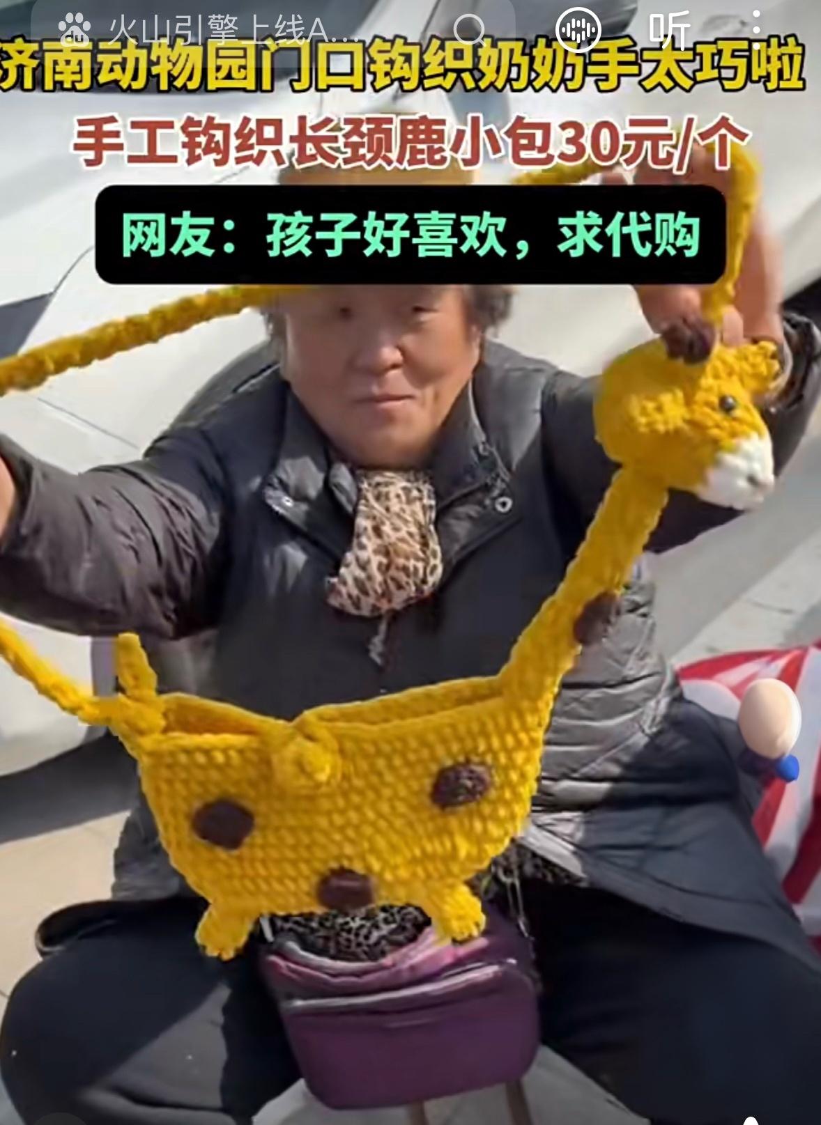 动物园门口做绝活 近日,济南动物园门口一位阿姨手工钩织的长颈鹿小包意外走红网络。她的摊位已摆多年,凭借精致可爱的手工造型吸引了众多游客。如今不少网友在社交平台留言求代购,这款售价30元的手工小包,也成了当地热门的暖心纪念品。