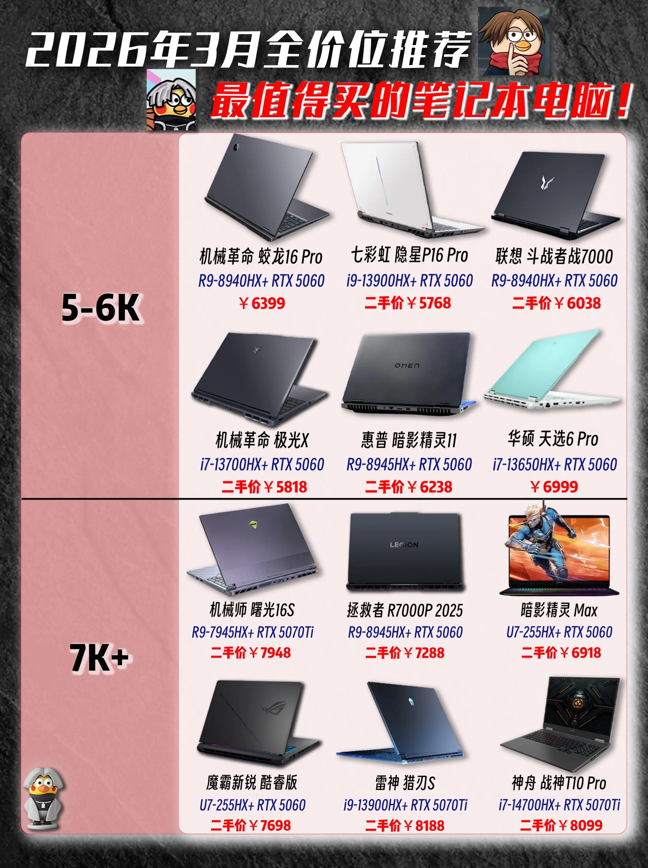 26年三月份笔记本电脑全价位全品类推荐。26年三月份笔记本电脑全价位全...