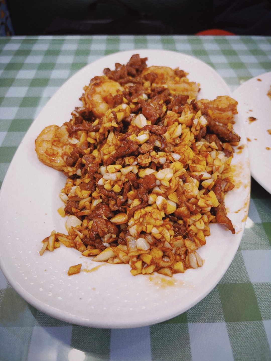 来北京不吃北京菜!当地人竟然带我去天津菜,还倍儿好吃!图一里的这个叫爆两样,虾仁和牛肉,灵魂蒜末爆炒,咸口,很香很下饭!图二叫洋白菜?是不是就是卷心菜,量巨大!图三图四不是,我只是为了凑图发点我日常解决温饱的。例如此刻我在机场茶餐厅吮鸳鸯!