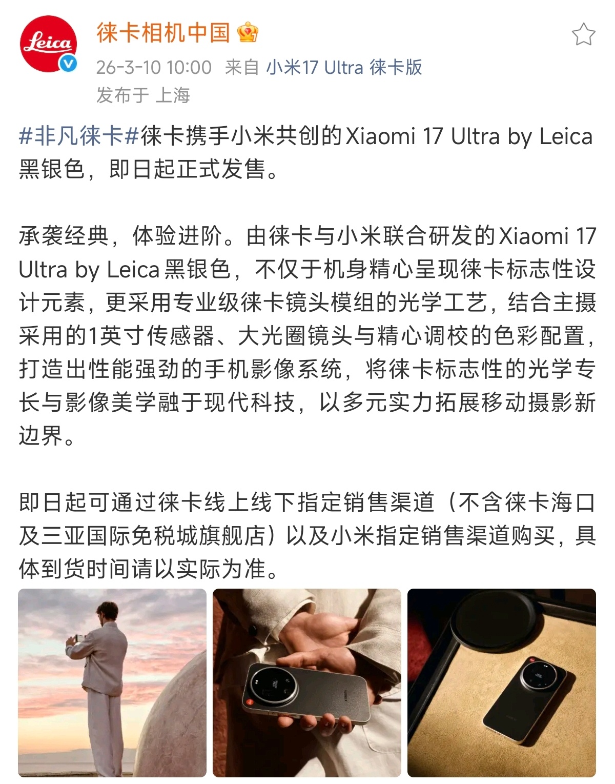 小米17 Ultra徕卡版黑银色正式开售,这是首款且唯一一款在徕卡中国门店售卖的手机,也是手机行业与影像品牌深度合作的历史性一步。小米17Ultra徕卡版黑银色开售