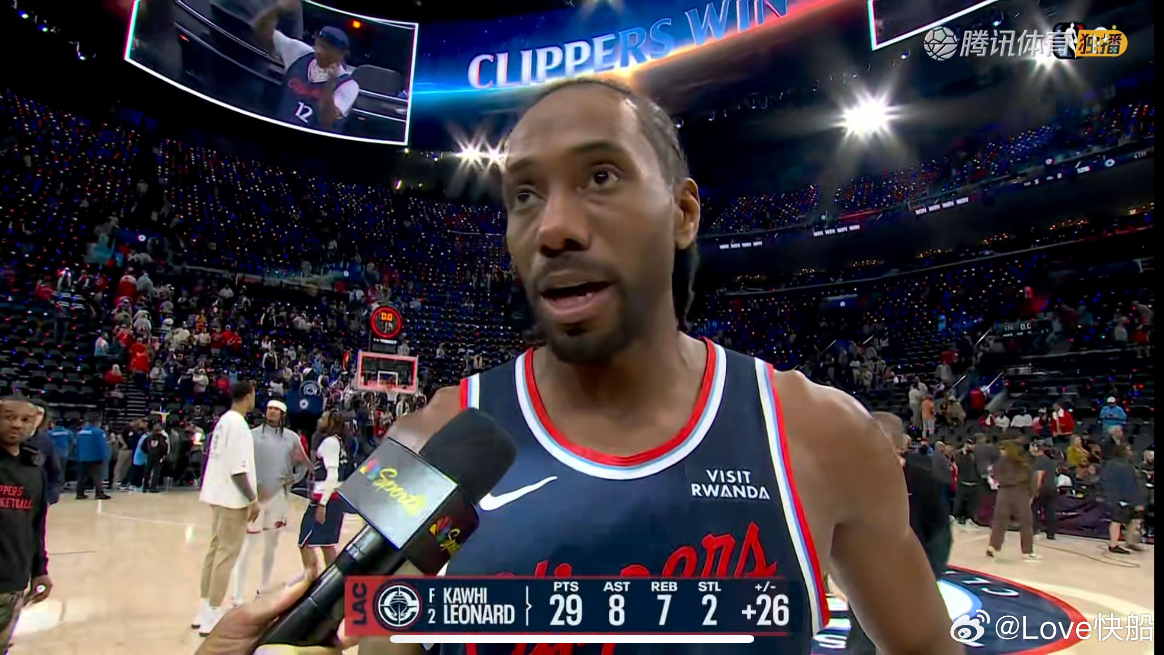 科怀-伦纳德出战35分钟,19投10中,其中三分球5投2中,罚球7投7中,得到29分7篮板8助攻2抢断。正负值+26!!!!!!