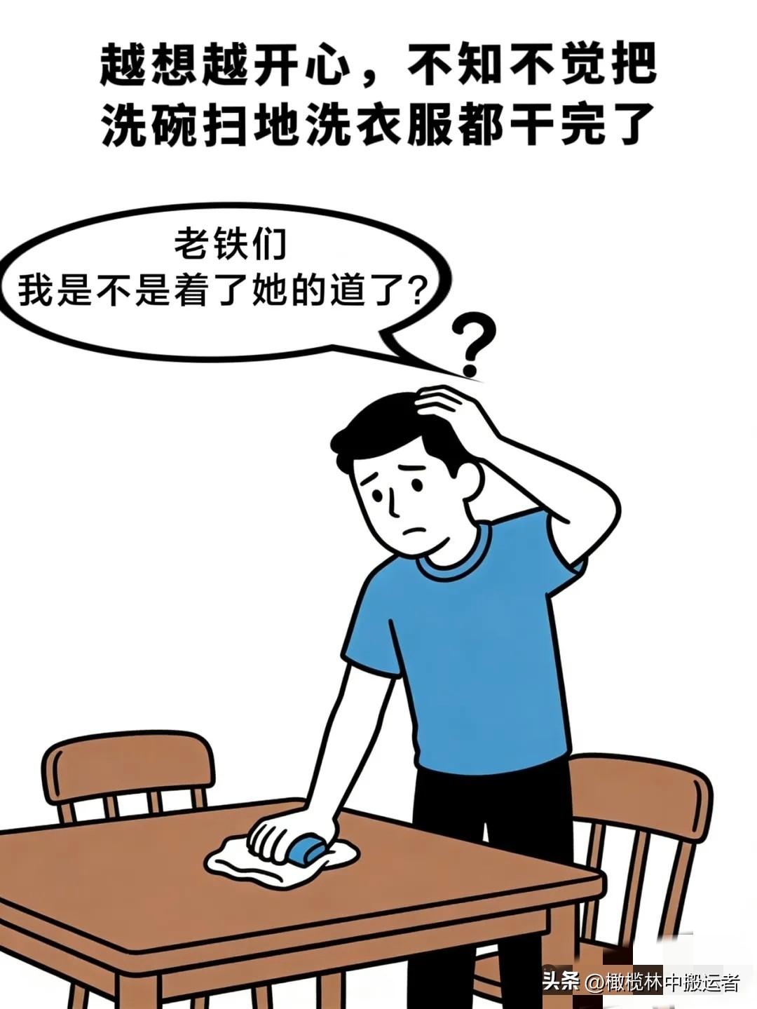 逗你开心:老婆吃完我做的饭后说:等我事业有成,一定不让你上班。我越想越开心,不知不觉把家务都干完了。老铁们,我是不是着了她的道了