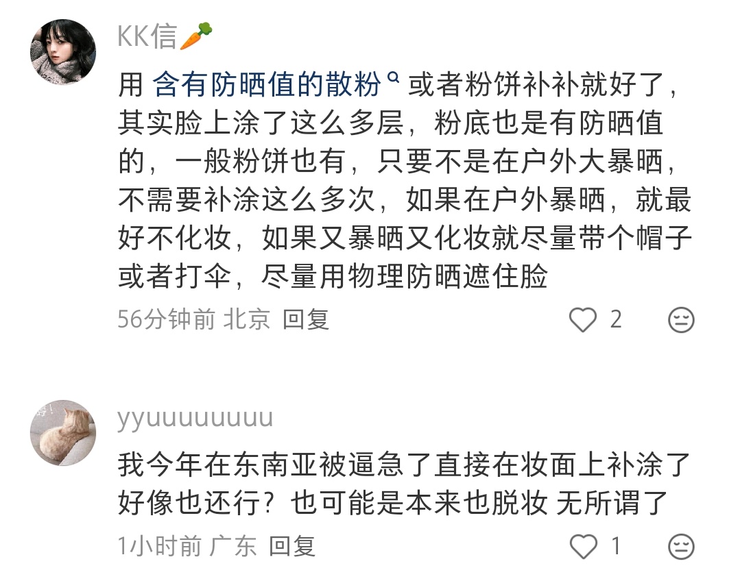 我以前也奇怪,化妆了怎么补防晒,现在感觉化妆就是一种物理防晒
