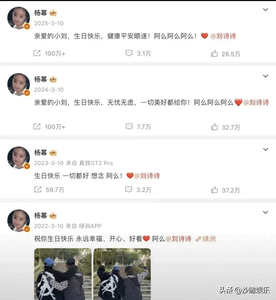 杨幂,太激动了! 3月10日,11:44,杨幂突然在社交平台高调发文,仅仅12个字,却字字透着兴奋:“生日快乐,顺顺利利,岁岁平安!想你[心]阿么![蛋糕]” 文末,还特地艾特了那个熟悉的名字——刘诗诗 。 为什么是11:44?这可不是随手一发!有细心的网友发现,这寓意着“一生一世”!不管是凑巧还是刻意,这份藏在时间码里的浪漫,真的磕死我了 。 今天是刘诗诗的生日,其实早在凌晨,就有粉丝开始蹲守。果然,杨幂的虽迟但到,这已经是她连续第五年高调为刘诗诗庆生了 。 两人结缘于2009年的《仙剑奇侠传三》,一个是活泼搞怪的雪见,一个是惹人怜爱的龙葵。那是无数90后的青春,也是“诗幂”CP的起点 。中间那些年,两人因为各自的事业轨迹,互动变少,甚至缺席了彼此人生中最重要的婚礼,让无数粉丝意难平,一度成为内娱“BE美学”的顶流 。 但从2022年起,杨幂像是开启了某种“追妻模式”,每年雷打不动,准时为刘诗诗送上祝福。特别是那句“阿么”,每年都要用,成了两人之间心照不宣的专属暗号 。 1. 那个“阿么”到底是什么梗? 很多新粉可能不懂,“阿么”其实就是两人当年在仙剑片场留下的“加密通话”。相当于我们和闺蜜之间的那种胡言乱语,但只有我们自己懂。在这个连祝福都要靠工作室代笔的娱乐圈,能坚持五年用同一个亲昵的、甚至在外人看来有点“幼稚”的词汇,这绝不是营业,这就是下意识的偏爱。 2. 从“避嫌”到“坦荡”:成年人的友情是做出来的 前几年两人互动,底下总有人阴阳怪气说“塑料姐妹花”、“商业互吹”。但今年评论区清一色都是“相信了”。为什么?因为除了线上喊话,线下两人也被拍到过多次同框。今年2月,两人在张艺谋电影《惊蛰无声》的路演现场,刘诗诗自然地给杨幂递话筒,那个动作骗不了人——真正的朋友,才接得住你台上的每一丝尴尬和每一刻需求 。 3. 不仅是庆生,更是给CP粉的一颗“定心丸” 现在的内娱,但凡有点流量的女星,粉丝之间经常撕得不可开交。但杨幂和刘诗诗硬是凭着一己之力,把“王不见王”变成了“顶峰相见”。连续五年的祝福,像是在告诉所有人:我们很好,勿cue。 其实我们怀念的,不只是杨幂和刘诗诗的友情,更是那个回不去的、属于《仙剑》的夏天。 在这个翻脸比翻书还快的名利场,杨幂和刘诗诗用五年时间,把一个关于“错过”的故事,硬生生改写成了“失而复得”。特别是那句“想你”和“阿么”,看起来简单,分量却极重。它不是那种“祝你新剧大爆”的客套,而是“哪怕全世界都在催你长大,我依然记得我们当初幼稚的模样”。 网友评论: - CP粉哭晕在厕所: “谁懂啊家人们!从雪见龙葵磕到诗幂,我以为我的cp早就be了,没想到她们给我挖出了一颗持续发糖的糖矿!” - 细节控表示很爽: “卡点1144,寓意一生一世;结尾‘阿么’,延续五年。幂姐这该死的仪式感,刘诗诗嫁给她(bushi)!” - 理智粉在线感慨: “内娱能有几个五年?而且她们现在都是顶流,完全没有必要去蹭热度或者炒作。唯一的解释就是,她们真的把对方当成了想留在身边的人。” - 也有路人疑惑: “只有我想知道‘阿么’到底啥意思吗?感觉比什么‘锁了’还肉麻,但放在她俩身上又莫名好磕!” 最后,祝刘诗诗生日快乐!也希望“诗幂”的友谊,能像杨幂卡的那个点一样,顺顺利利,岁岁平安。