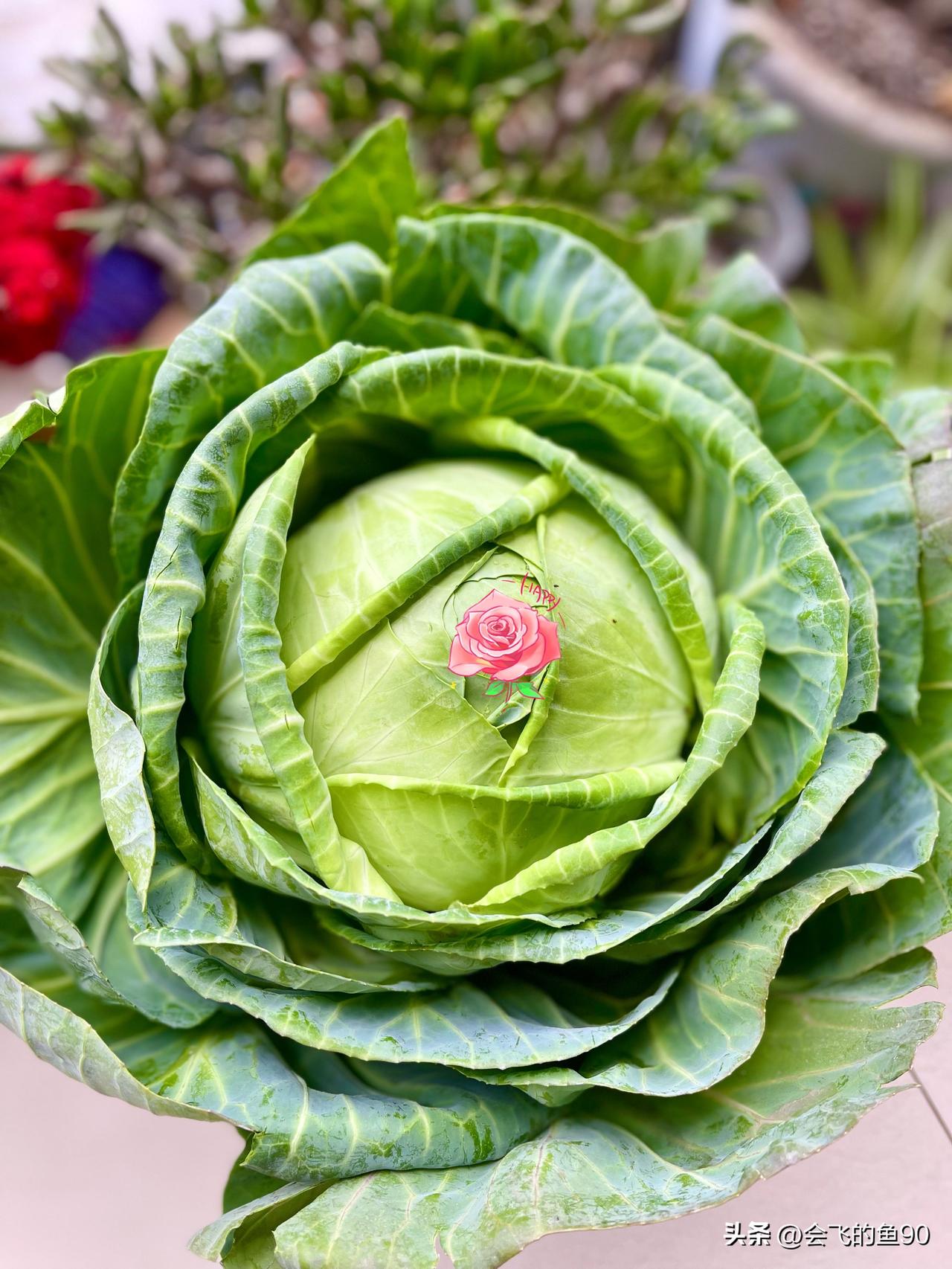 在菜市场无意间发现,这颗静静躺着的莲花白,一层层绽放,像极了开放的玫瑰花,我果断花一元大洋,把它买回家,当作最接地气的花花来养!