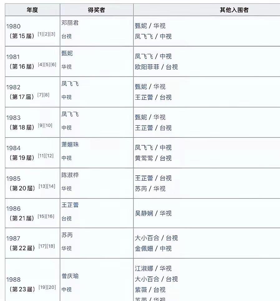 历届金钟奖女歌星演员(金曲奖前台湾女歌手最高荣誉):你最喜欢哪一位?