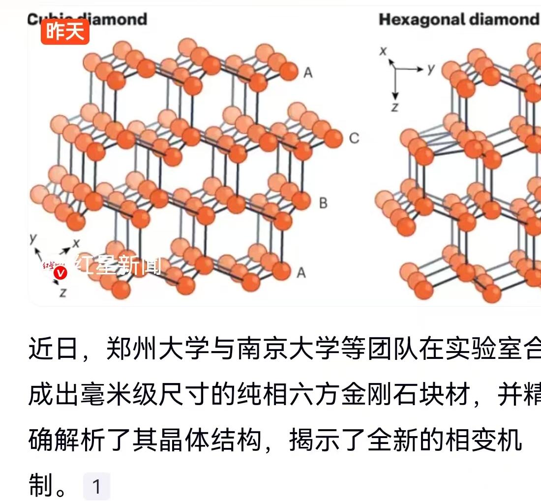 钻石一直被视为自然界中最坚硬的物质,是工业切割和打磨领域的“王者”。但这一常识,如今正在被中国科研团队改写。近日,郑州大学与南京大学强强联手,在实验室里成功合成出了一种硬度超越天然钻石的新材料——纯相六方金刚石块材。这不仅是材料学领域的一次重大突破,更是直接攻克了困扰国际学术界长达60年的科学难题。 很多人可能不知道,我们常说的钻石,在晶体结构上属于“立方金刚石”。而这次中国团队合成的“六方金刚石”,虽然化学成分也是碳,但因为原子排列方式不同,其物理性能有着天壤之别。研究团队精确解析了其晶体结构,发现这种新材料的碳原子是以两层为周期进行六方排列的。相比之下,普通的立方金刚石是三层堆叠。正是这种独特的“两层周期”结构,让六方金刚石在抗剪切能力上表现惊人,其键长差异进一步增强了材料整体的强度。简单来说,它比我们认知中的钻石还要硬得多,部分性能指标显示其硬度甚至可能超过钻石50%。 想要把理论变成现实,绝非易事。这种“超级神钻”的合成条件极其苛刻,堪比炼狱。实验过程中,科研人员需要对石墨施加每平方厘米200吨的巨大压力,同时将环境温度推高至1400℃。在如此极端的高温高压环境下,石墨发生了神奇的相变,最终才制备出毫米级尺寸的纯相六方金刚石。在这个过程中,团队还揭示了全新的相变机制,为未来探索新型超硬材料提供了全新的理论依据。 这种新材料到底有什么用?这就不得不提它在工业领域的巨大潜力。首先是超硬工具领域,想象一下,用这种材料制成的深海钻头,在面对海底坚硬岩石时能坚持更久,寿命远超现有材料;用在精密切割刀具上,加工精度和效率都将迎来质的飞跃。更关键的是,六方金刚石拥有极高的热稳定性,能承受高达1100℃的高温。这意味着它能胜任极端环境下的防护任务,比如作为航天器的装甲,在穿越大气层的高温摩擦中保护设备,或者是用于核反应堆部件,在极端辐射和热环境中保持稳定。 回顾过往,关于六方金刚石的研究可以追溯到几十年前,但如何合成出纯净的、块状的六方金刚石,一直是全球科学家的痛点。这次郑州大学与南京大学团队的成功,不仅填补了这一领域的空白,更意味着中国在超硬材料领域掌握了核心技术。从工业制造的“牙齿”到大国重器的“铠甲”,这种“中国造”的超级材料,未来必将在高端制造和国防科技中占据重要一席。 以上内容仅供参考和借鉴