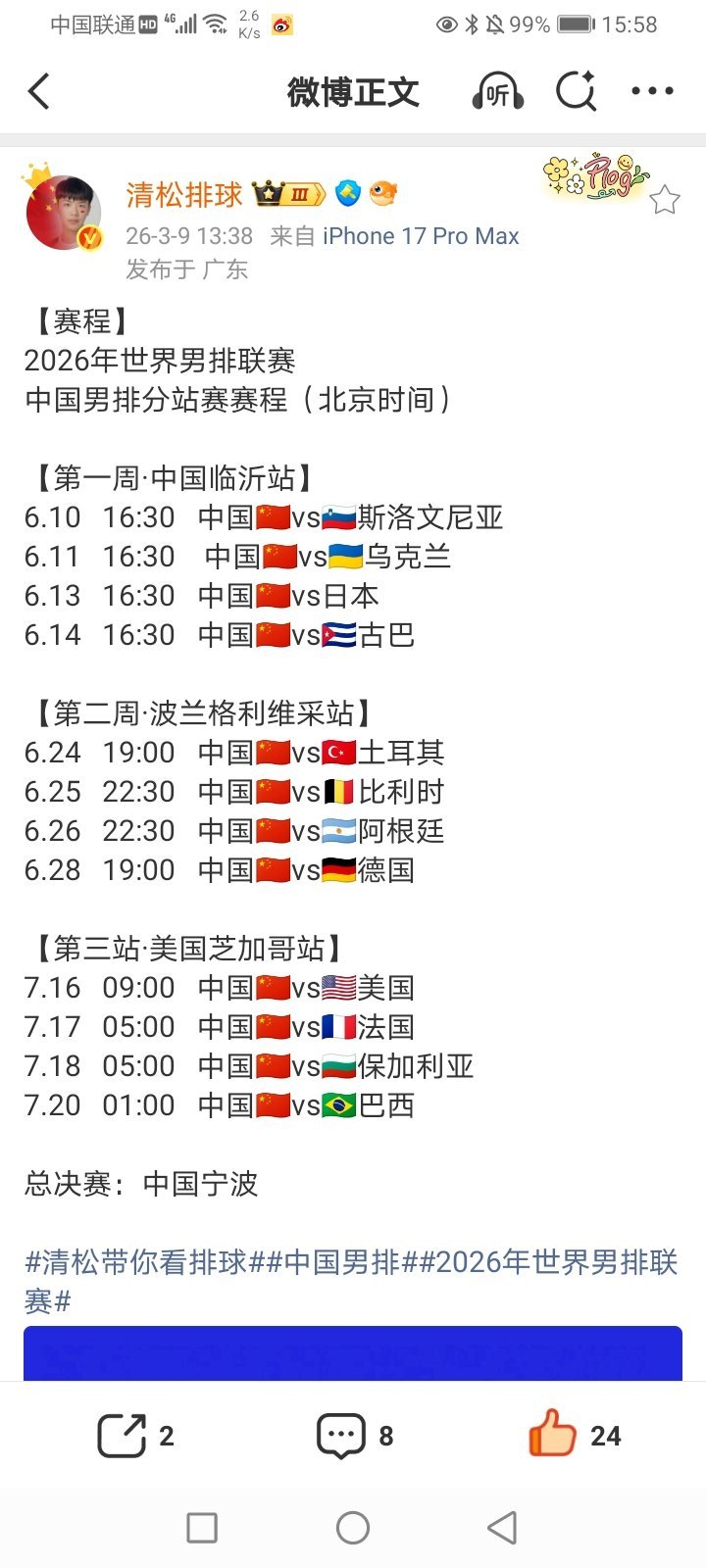 2026年3月10日-2026米兰.科尔蒂纳冬残奥会冰球小组赛A组 中国11-1轻取(东道主)意大利(中国残奥冰球队获得两连胜 提前晋级半决赛) 2026米兰.科尔蒂纳冬残奥会轮椅冰壶混双循环赛 韩国-英国/瑞典-美国/加拿大-拉脱维亚/斯洛伐克-意大利/美国7-6中国(中国轮椅冰壶混双队终结六连胜 遭遇首败 6胜1负 仍然获得循环赛第一)/混合团体循环赛 挪威2-11中国(卫冕冠军中国轮椅冰壶混合团体队获得四连胜)/韩国-斯洛伐克/英国-瑞典/美国-拉脱维亚 2026女足亚洲杯小组赛B组第3轮 孟加拉国0-4乌兹别克斯坦(乌兹别克斯坦女足终结两连败 获得首胜 小组第三/孟加拉国女足遭遇三连负 小组垫底)/朝鲜1-2被中国逆转(卫冕冠军中国女足获得三连胜 小组第一/朝鲜女足终结两连胜 遭遇首败 获得小组第二) 2026WCBA俱乐部杯决赛阶段 3 4名决赛 新疆81-88被江苏逆转(江苏女篮获得季军/新疆女篮遭遇两连败 获得第四名)/冠亚军决赛 山西95-74大胜四川(山西女篮获得冠军/四川女篮终结四连胜 获得亚军) 部分重点赛事预告:CCTV5直播:16:30 2026米兰.科尔蒂纳冬残奥会轮椅冰壶混合团体循环赛 中国-加拿大 CCTV5+直播:16:55 2026女足亚洲杯小组赛C组第3轮 印度-中国台北 20:30 2026米兰.科尔蒂纳冬残奥会冰球小组赛 美国-中国 22:00 2026米兰.科尔蒂纳冬残奥会轮椅冰壶混双循环赛半决赛 中国-拉脱维亚 CCTV5客户端直播:16:35 2026米兰.科尔蒂纳冬残奥会轮椅冰壶混合团体循环赛 英国-意大利/韩国-挪威 21:35 2026米兰.科尔蒂纳冬残奥会轮椅冰壶混双循环赛半决赛 韩国-美国 19:00(2场) 2025-2026女排超级联赛A级季后赛第5轮(第19轮) 河南-北京/天津-上海 13:00/15:00 2025-2026女排超级联赛B级季后赛第二阶段C组9-12名排位赛 江苏青年队-福建青年队/山东青年队-辽宁青年队 13:00/15:00/17:00(2场) 1/4交叉赛 上海青年队-辽宁/四川-云南/江西-南京师范大学/深圳-河北 13:00/15:00 2025-2026男排超级联赛B级季后赛第二阶段C组9-12名排位赛 上海青年队-广东青年队/河北青年队-福建青年队 13:00/15:00/17:00(2场) 1/4交叉赛 四川-河南/湖北-浙江/中山大学-云南/辽宁-南昌大学 其他: