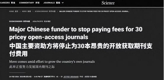 中科院向全世界正式宣布:停止一切拨款,西方学界哀嚎一片 中科院一道“停付令”炸翻全球学术圈!从2026年3月1日起,禁止用院内经费和中央财政,给30多种国际高价OA期刊交发表费,西方出版商瞬间急了,不少人直接“破防”。 中国每年要给这些国外期刊交9亿多美元版面费,相当于白白送出去几十亿。这不是小气,是不想再当冤大头。 这一招不仅在省钱,更是在扭转“唯外刊论”的歪风,中国科研终于挺直腰杆,不再靠国外杂志“镀金”。你支持中科院这波硬气操作吗?我先亮明态度,我举双手双脚支持,这波操作真的太解气,也太有必要了。 很多人可能没概念,9亿多美元到底是多少钱。换算成人民币,这笔钱已经超过64亿元,比我国每年缴纳的联合国年费还要多,这笔钱全是国家财政和科研经费,说到底都是全体纳税人的血汗钱。 这些钱没有用在建设实验室、购买科研设备上,也没有用在培养青年科研人员身上,反倒一股脑流进了国外出版商的口袋,大家可能不知道,国外这些高价OA期刊,收费真的离谱到没边。 就说《自然-通讯》这本期刊,2026年刚把单篇发表费从6990美元涨到7350美元,一篇论文发表就要花掉5万多人民币,还有《细胞报告》《科学进展》这些刊物,单篇发表费也都在5000美元以上,折合人民币三四万起步。 更离谱的是,这些期刊的中国作者占比极高。《自然-通讯》的中国作者稿件接近40%,《科学进展》《细胞报告》的中国作者占比也都超过30%,相当于我们花大价钱,把自己的科研成果送出去,还要给别人交高额“门票费”,才能获得所谓的“认可”。 西方出版商之所以急得“破防”,核心原因就是他们断了最大的“摇钱树”。 在全球开放获取期刊市场里,中国贡献了将近30%的付费份额,是他们最稳定、最庞大的收入来源。 中科院这道停付令一出台,直接切断了他们的核心收益,这些出版商的业绩和利润都会受到巨大冲击,他们能不急吗?还有些和出版商利益捆绑紧密的西方学者,也跟着哀嚎。他们急的不是学术交流受阻,是自己没法再靠收割中国科研经费获利。 很多科研人员被逼得没办法,只能放弃那些周期长、难度大、关乎国家“卡脖子”技术的研究,去做一些容易出数据、容易发外刊的“短平快”课题,这种风气,不仅浪费了大量科研经费,还耽误了我国科技创新的进度。 更可笑的是,我们自己的科研成果,发表在国外期刊上后,我们自己想看,还要再花钱买数据库权限,国外出版商拿着我们的科研成果,反过来赚我们的钱,这种冤大头,我们真的当够了。 其实不止中国,全球很多科研强国都在抵制这种天价版面费,德国早就给论文发表费设置了上限,美国也在准备出台相关限制政策。中科院这次带头行动,不仅是为自己维权,也是在给全世界学术界出一口恶气,顺应了全球学术圈的正义趋势。 现在的中国,早就不是过去那个需要靠花钱买“认可”的国家了,2024年,SCI收录的中国论文就有86.68万篇,占全球总量的32.9%,在9个学科领域,论文被引用次数都排在世界第一位。 我们的科研实力已经足够强,我们的科研成果,不需要靠国外期刊“镀金”来证明价值,把每年60多亿的经费省下来,投入到核心技术攻关、实验室建设、青年科研人员培养上,才能真正提升我国的科技实力。 中科院这波硬气操作,就是要告诉全世界,中国科研不再依附于国外期刊,我们要建立自己的评价体系,让科研回归创新本身,这不是学术脱钩,而是中国科研的自信觉醒。 往后,我们评价一项科研成果的价值,看的是它能不能解决实际问题,能不能突破关键技术,能不能为国家发展做贡献,而不是看它发在什么级别的外刊上,可能有人会担心,停付天价版面费,会不会影响我国的国际学术交流。 这种担心完全多余。真正的学术交流,靠的是成果的质量,不是靠花钱买发表。 我们的科研人员有足够的实力,就算不花天价费用,优质成果照样能获得国际认可,而且这波操作,还能倒逼国内学术期刊发展。 过去很多优质成果都流向了国外期刊,国内期刊很难发展起来,现在中科院带头引导科研人员理性投稿,国内期刊就能获得更多优质稿件,慢慢提升自身的学术影响力,形成属于我们自己的学术话语权。 说到底,中科院这波操作,既守住了钱袋子,又纠正了歪风气,还能推动我国科研事业良性发展,一举多得,再次问问大家,这样硬气又务实的操作,你能不支持吗?评论区留下你的看法,一起为中科院点赞!