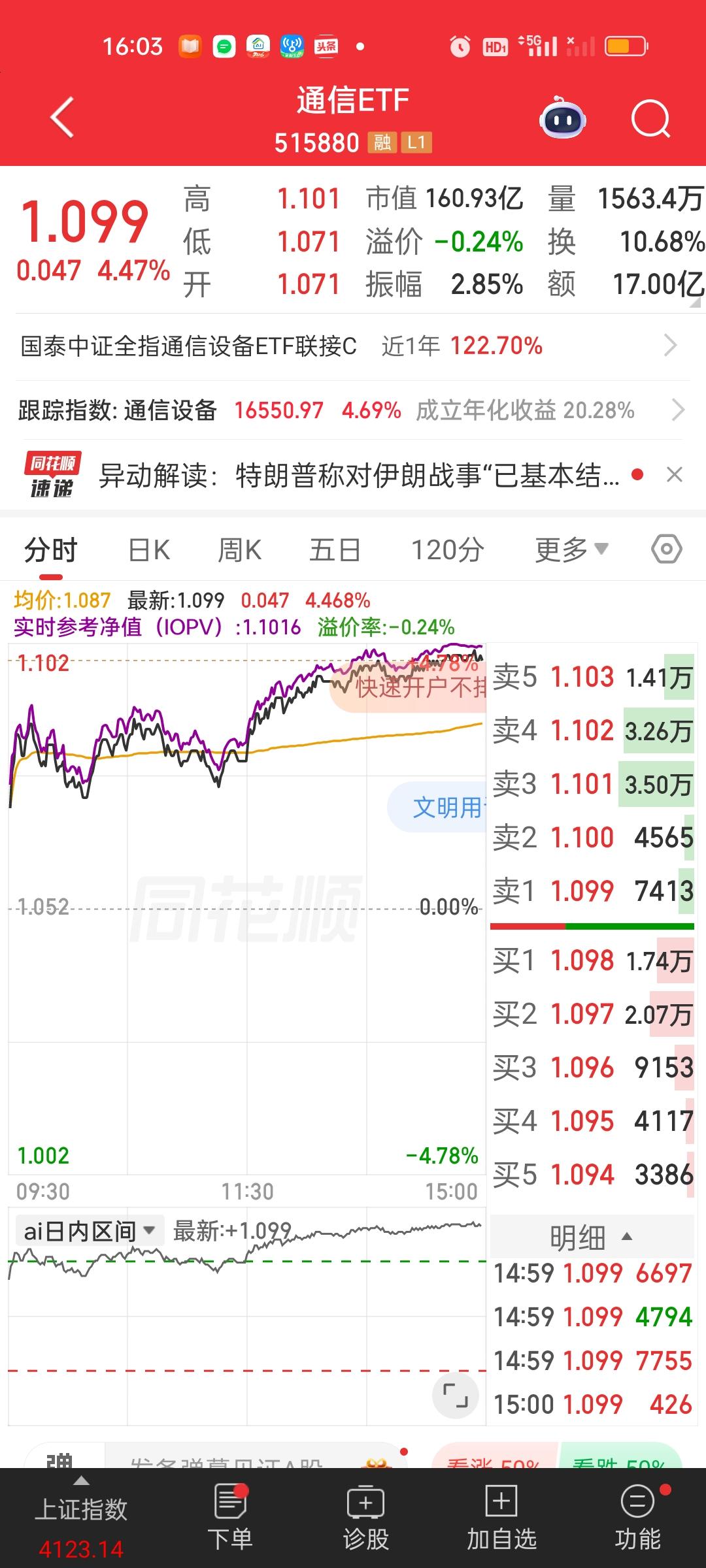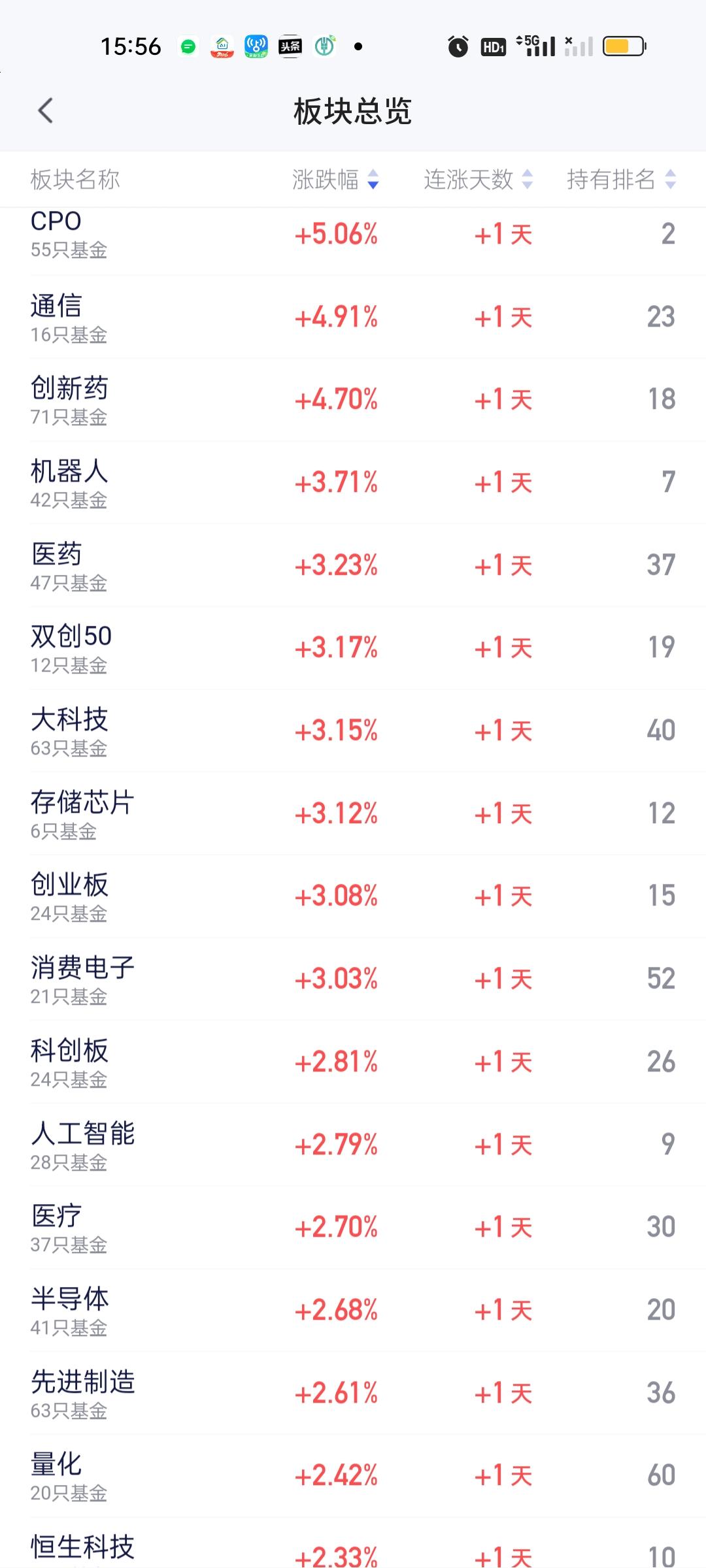 今天拿煤炭的是最不爽的,一共就没几个板块緑,可煤炭居然跌了近3个点。昨天买进CPO的是最爽的,特别是场内通信ETF昨天开盘跌7个点,收盘跌2个点,今天收盘又是直接5个点起飞了。如果在昨天低点买进今天高点卖出,两天就能挣近10个点。创新药,机器人,医药,双创50,存储芯片,创业板,消费电子,科创50,人工智能也爽的不要不要的。