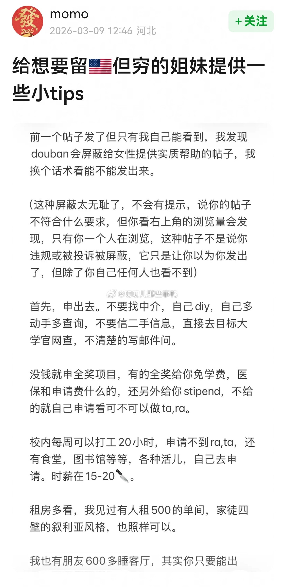 给想要留🇺🇸但穷的姐妹提供一些小tips~
