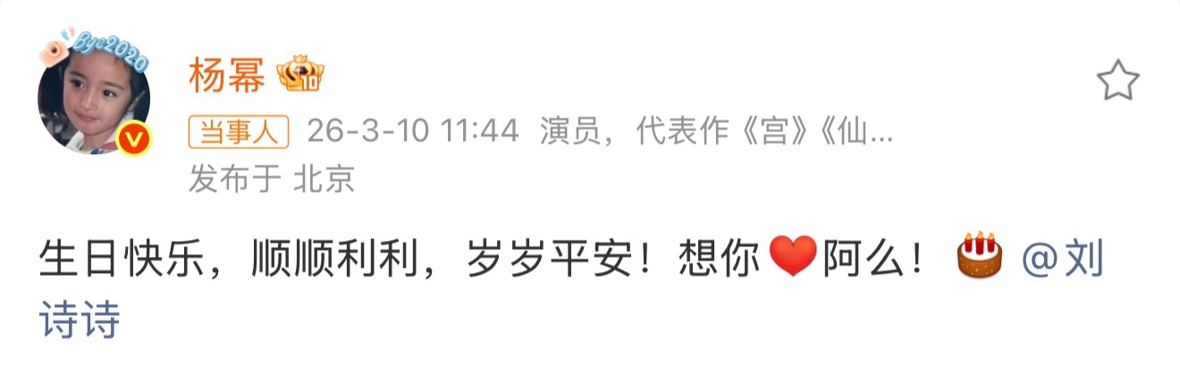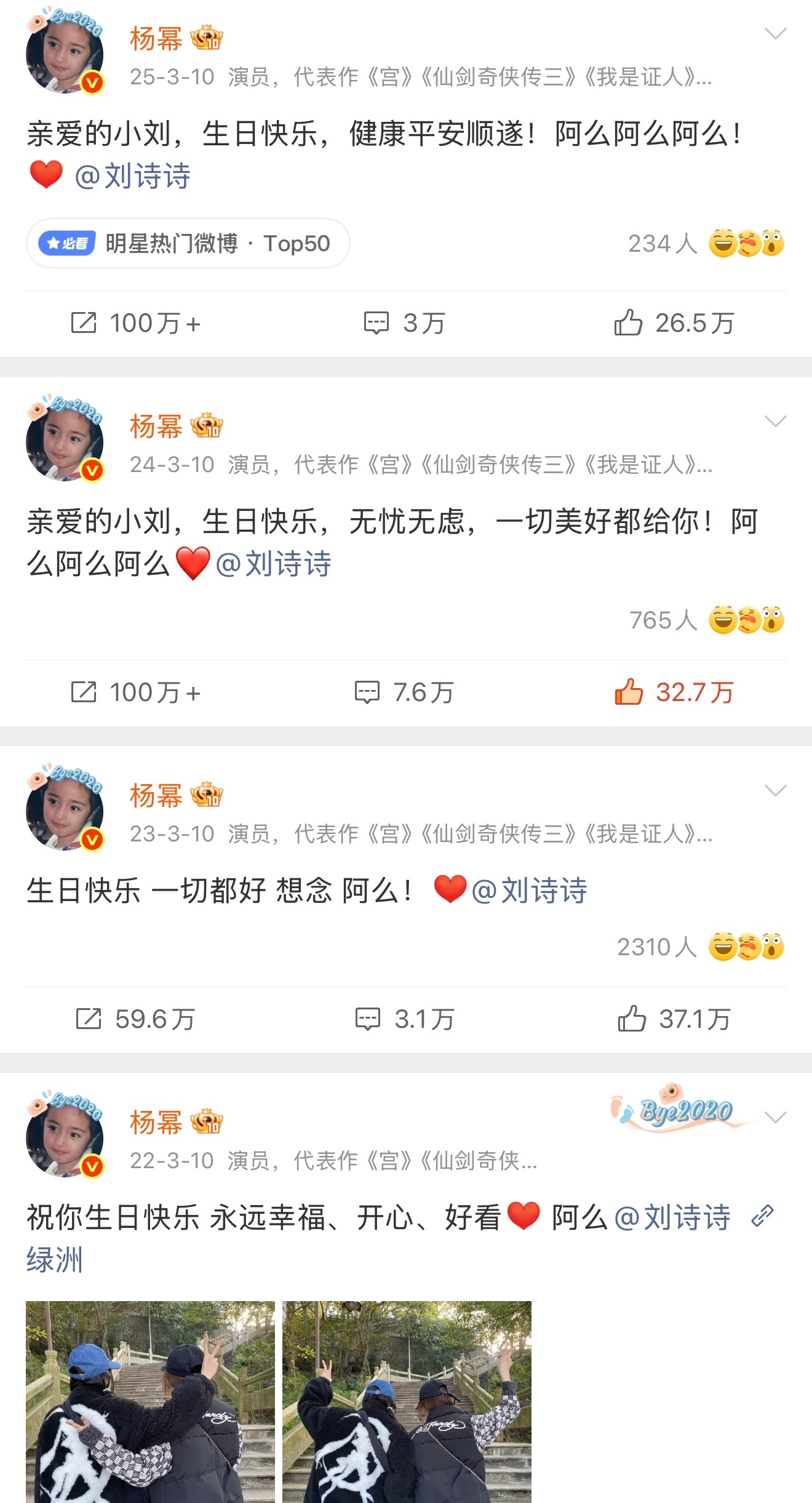 杨幂连续五年为刘诗诗庆生诗幂友谊久久