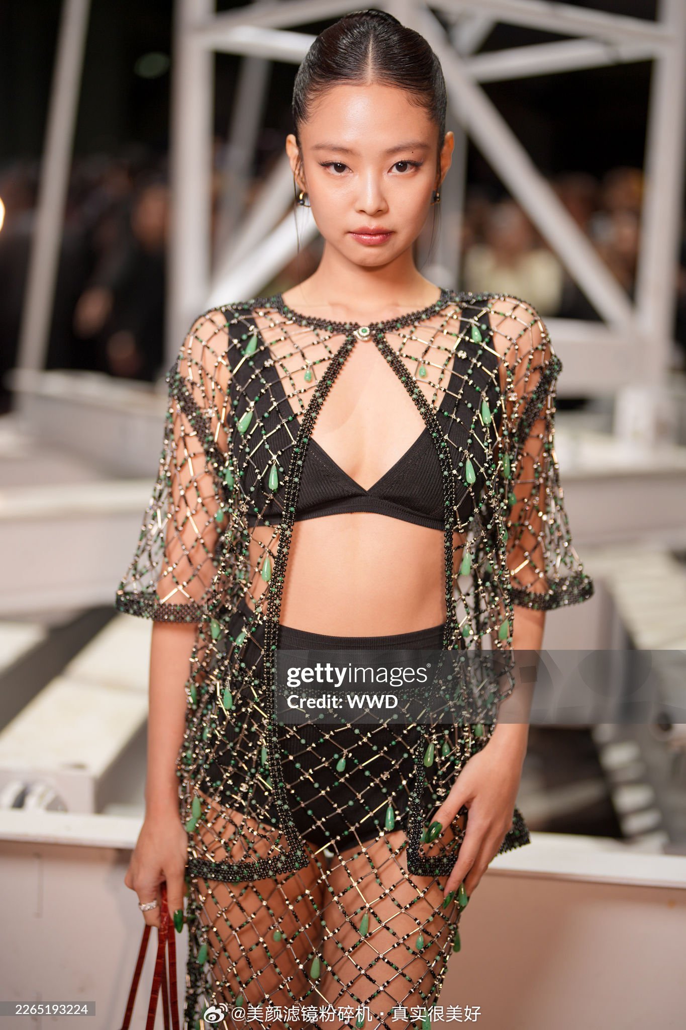 Jennie巴黎时装周Chanel大秀新闻图Jennie镂空透视装