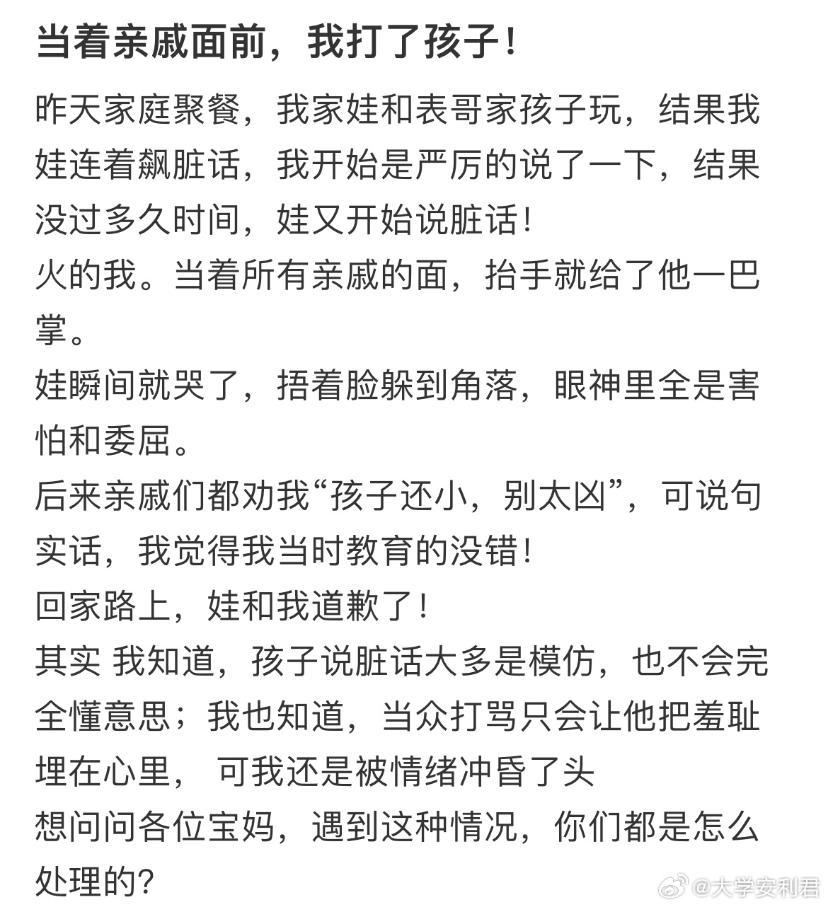 当着亲戚面前,我打了孩子!