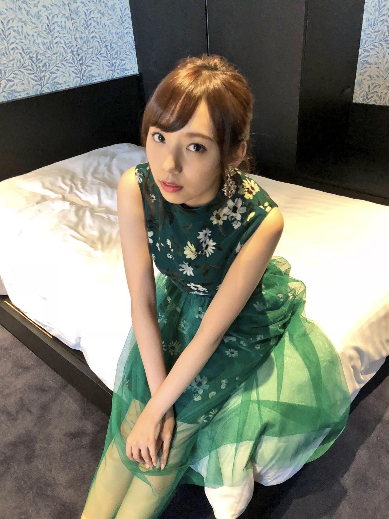 在东京塔下,少女与秋叶的邂逅。日本美女新内真衣写真集系列,一袭绿裙增色,若隐若现